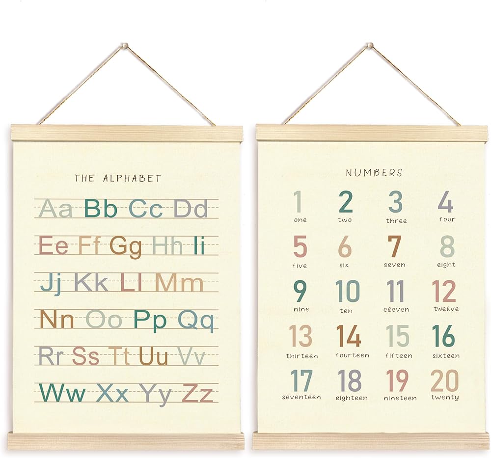 cgbhw الفصول الدراسية ديكور الأبجدية ملصق شماعات الإطار مجموعة من 2، الأبجدية لجدار الفصول الدراسية، حزمة ديكور الفصول الدراسية ما قبل المدرسة، الحضانة رياض الأطفال غرفة الأطفال التعليمية جدار الفن شنقا ديكور