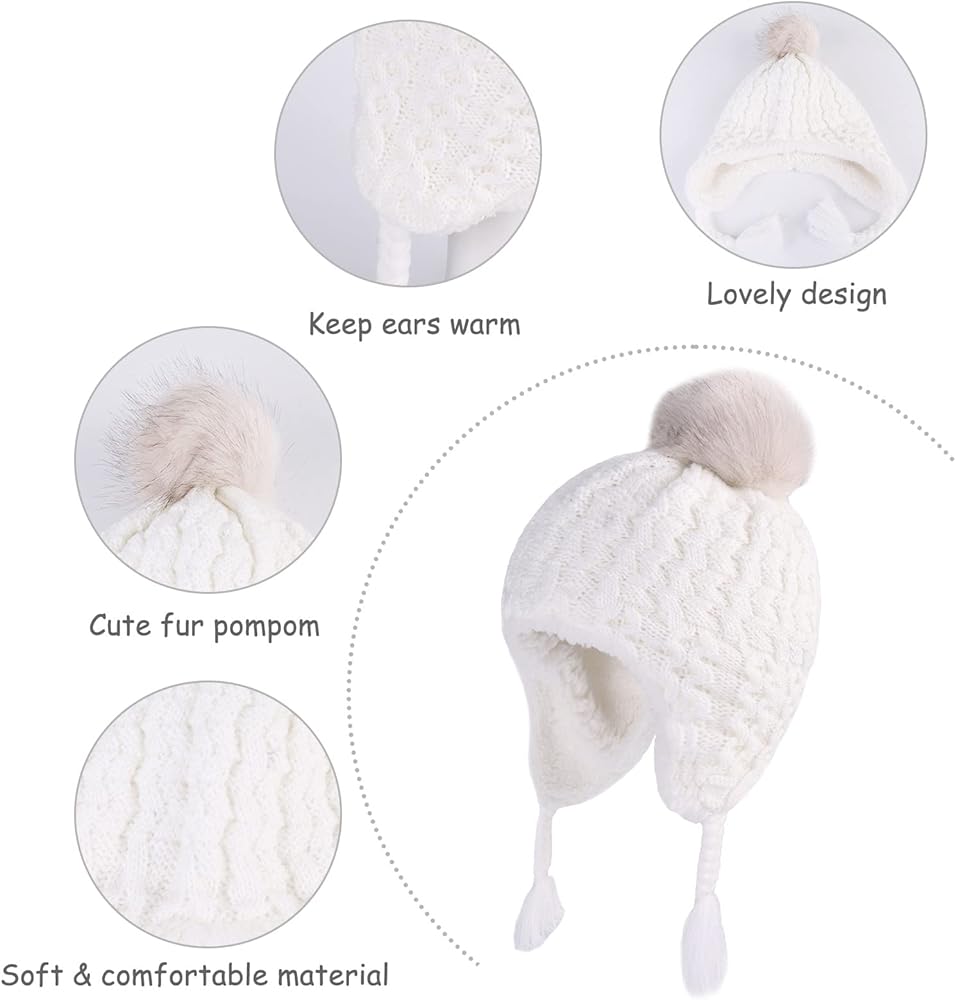 خامة عالية الجودة: قبعة الأذن المحبوكة للشتاء للأطفال مصنوعة من أقمشة أكريليك بنسبة 100%، مبطنة بالصوف السميك، وهو فائق النعومة وصديق للجلد ودافئ ومريح للارتداء طوال اليوم. تضمن حرفة الحياكة الكروشيه الضيقة المتانة العالية.