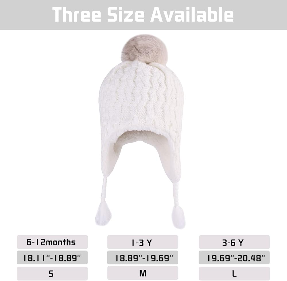 تتوفر ثلاثة مقاسات: قبعة صغيرة شتوية للأطفال متوفرة بثلاثة مقاسات، وهي مناسبة جدًا للفتيات والأولاد من سن 1 إلى 6 سنوات. المقاس الصغير: محيط القبعة حوالي 18.11-18.89 بوصة للأطفال من سن 6 إلى 12 شهرًا، المقاس المتوسط: محيط القبعة حوالي 18.89-19.69 بوصة للأطفال الصغار من سن 1-3 سنوات؛ المقاس الكبير: محيط القبعة حوالي 19.69-20.48 بوصة للأطفال من سن 4-6 سنوات. (العمر مرجعي فقط، يمكنك اختيار المقاس وفقًا لمحيط رأس طفلك.)