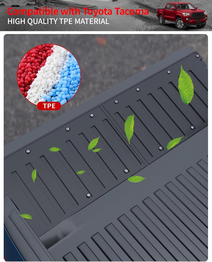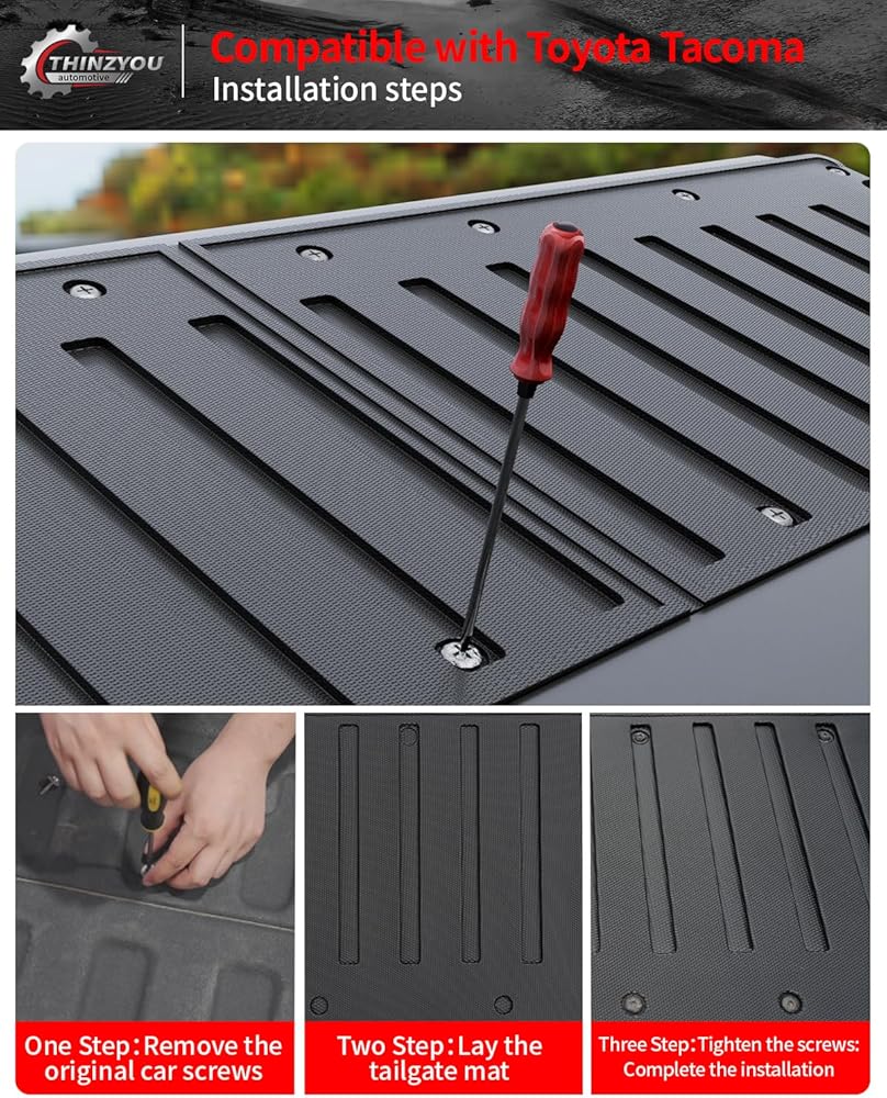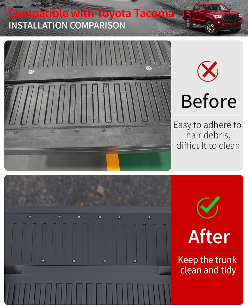 • الإعداد: حصيرة الباب الخلفي لدينا متوافقة مع 2005 2006 2007 2008 2009 2010 2011 2012 2013 2014 2015 2016 2017 2018 2019 2020 2021 2022 2023 Toyota Tacoma. يرجى التحقق بوضوح قبل الشراء.