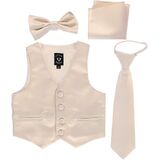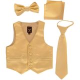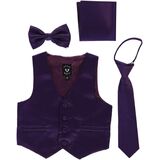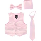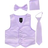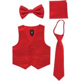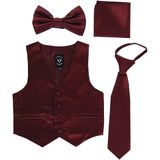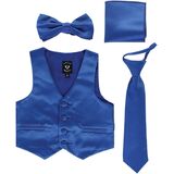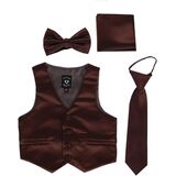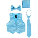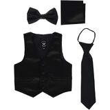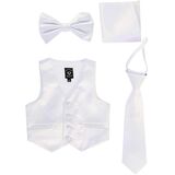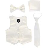 4-Piece includes satin vest, adjustable neck-tie, cilp-on bowtie and matching color pocket square or hanky