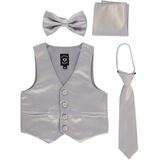 Satin Boys Vest for tuxedos w/ Zipper Tie Bow Tie & Hanky. Perfect for Tuxedos 1. Satin vest 2. Adjustable around the necktie with buckle at back for easy closure. 3. Adjustable clip-on bow tie 4. Matching color Satin hanker chief