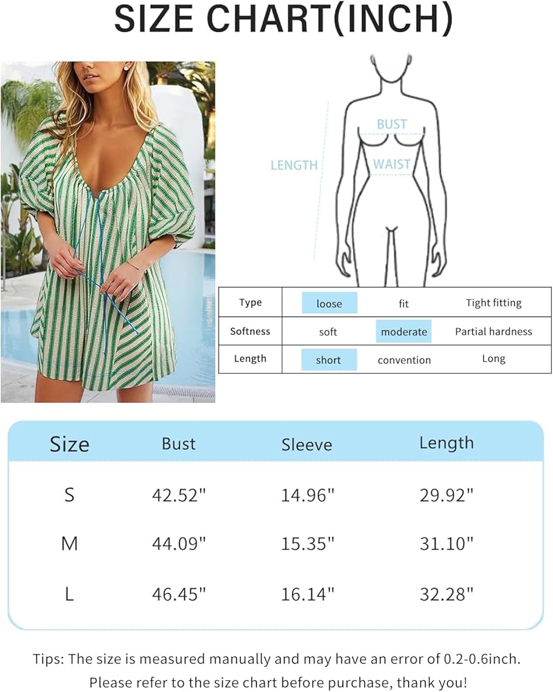 [القماش]: ثوب فضفاض مخطط لصيف 2024، مقاس أمريكي قياسي، S:4-6 M:8-10 L:12-14، رومبير منتفخ بأكمام قصيرة مصنوع من قماش عالي الجودة وصديق للبشرة، مما يمنحك تجربة ارتداء جيدة الأيام الحارة.
