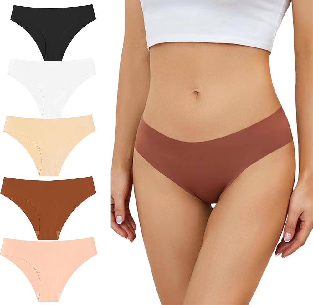 💖【Color & Style 】Multi color hipster briefs are included, it is classic sexy seamless no show panties. 5 Packs seamless no show brief set meets your daily requirements
