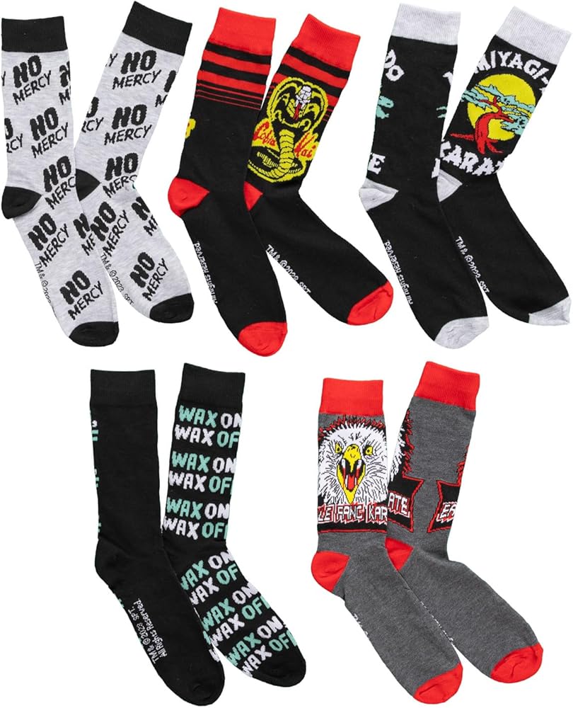 Step into the world of Cobra Kai with these stylish and comfortable men's assorted socks! Whether you're a die-hard fan of the dojo or simply seeking high-quality socks with a touch of martial arts flair, this 5-pack of Cobra Kai socks is the perfect choice. Each pair features iconic Cobra Kai designs that showcase your allegiance to the legendary dojo.
