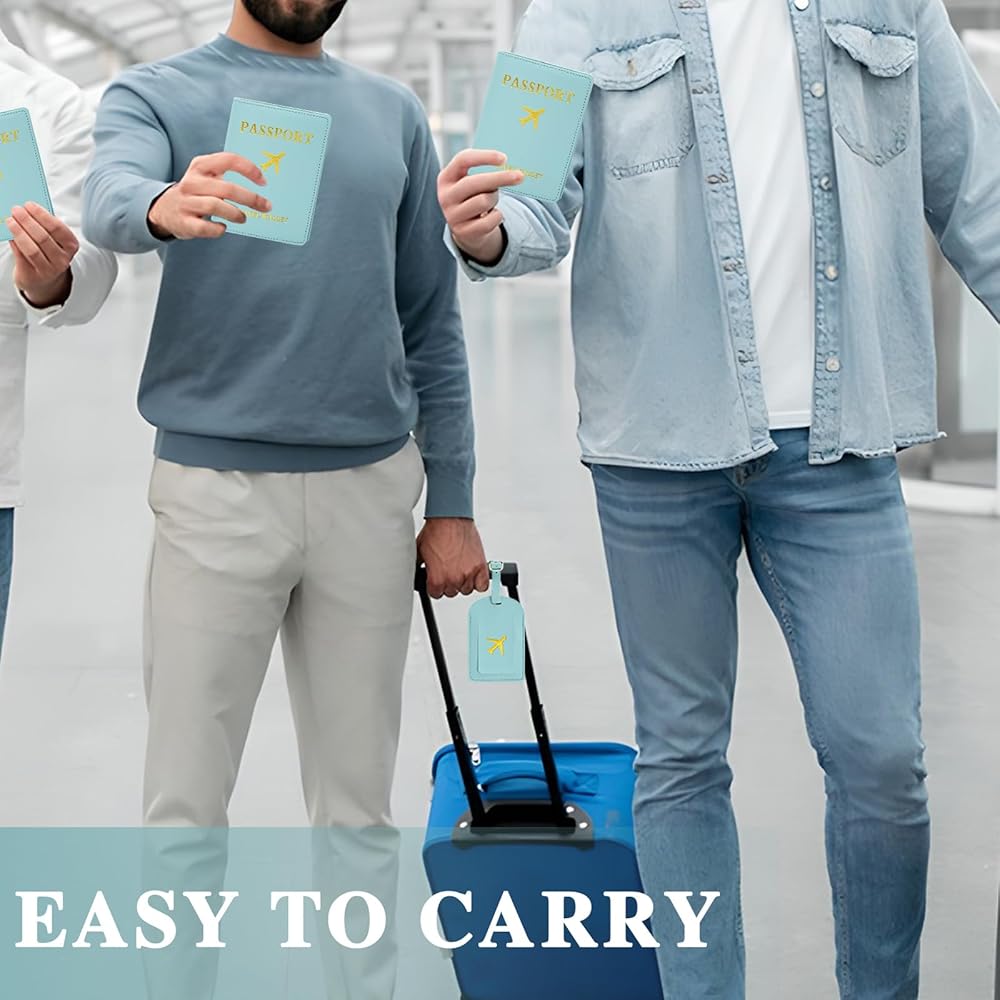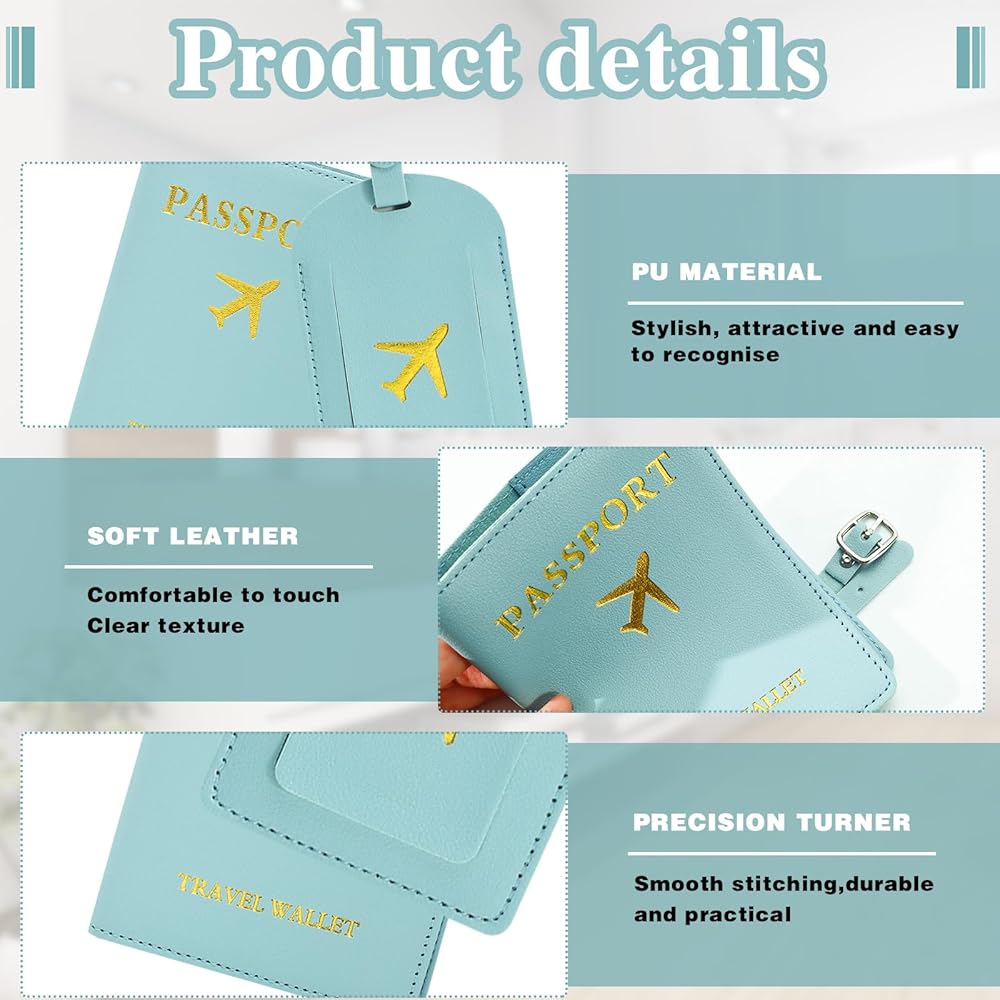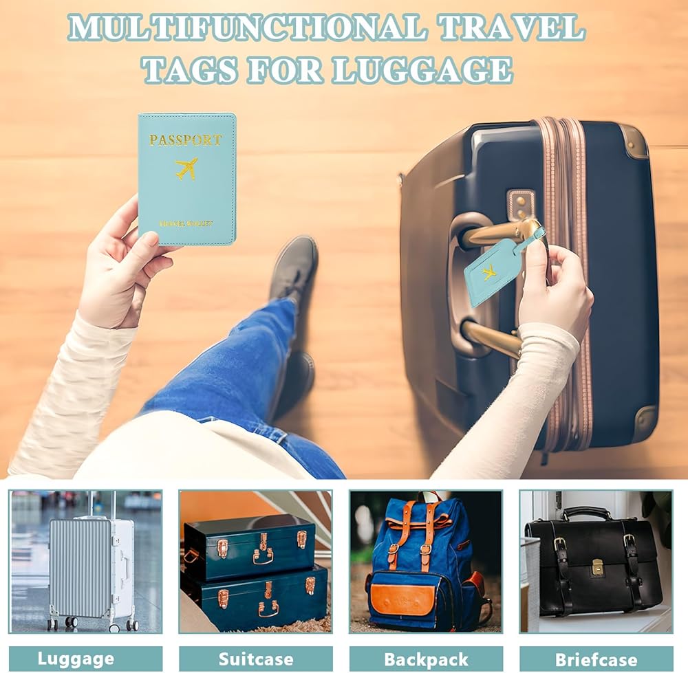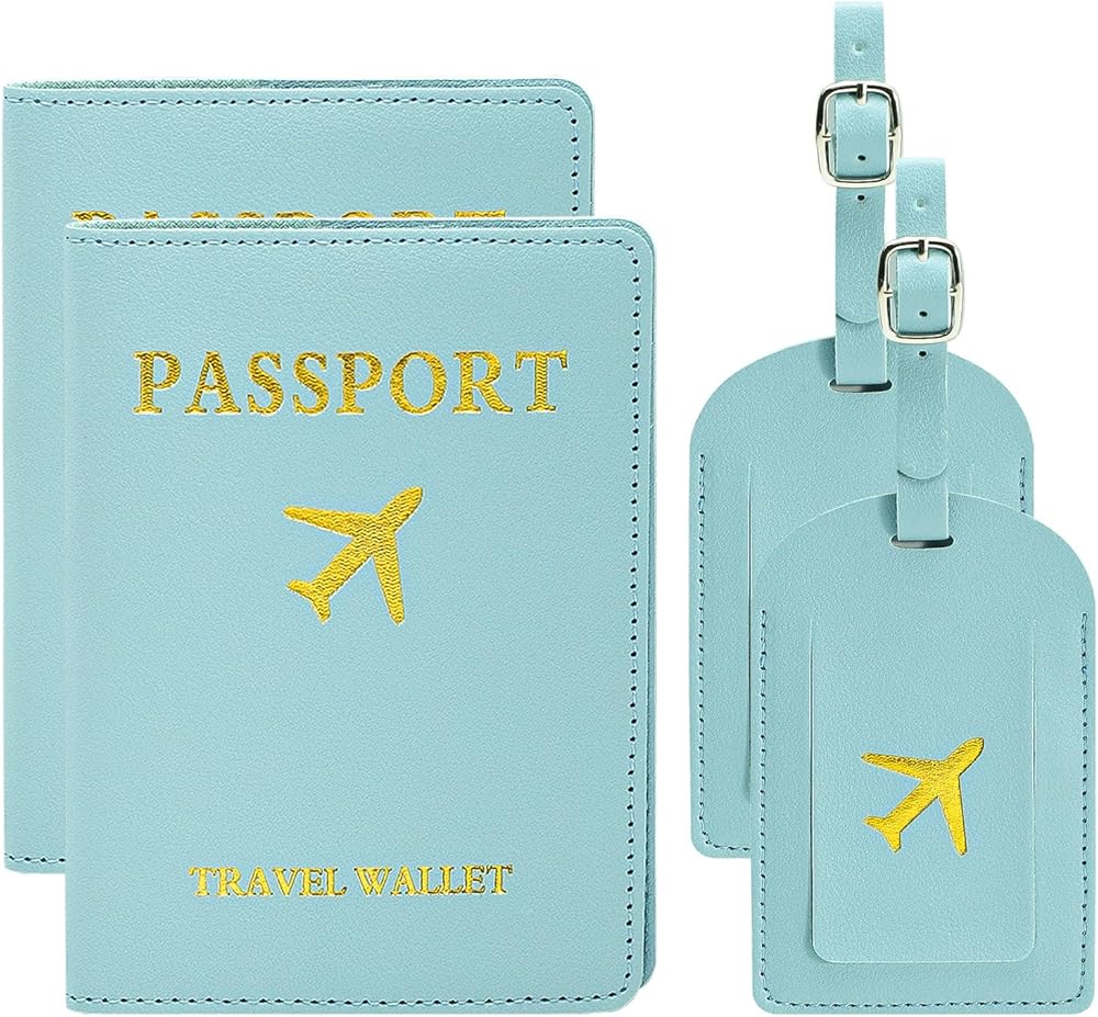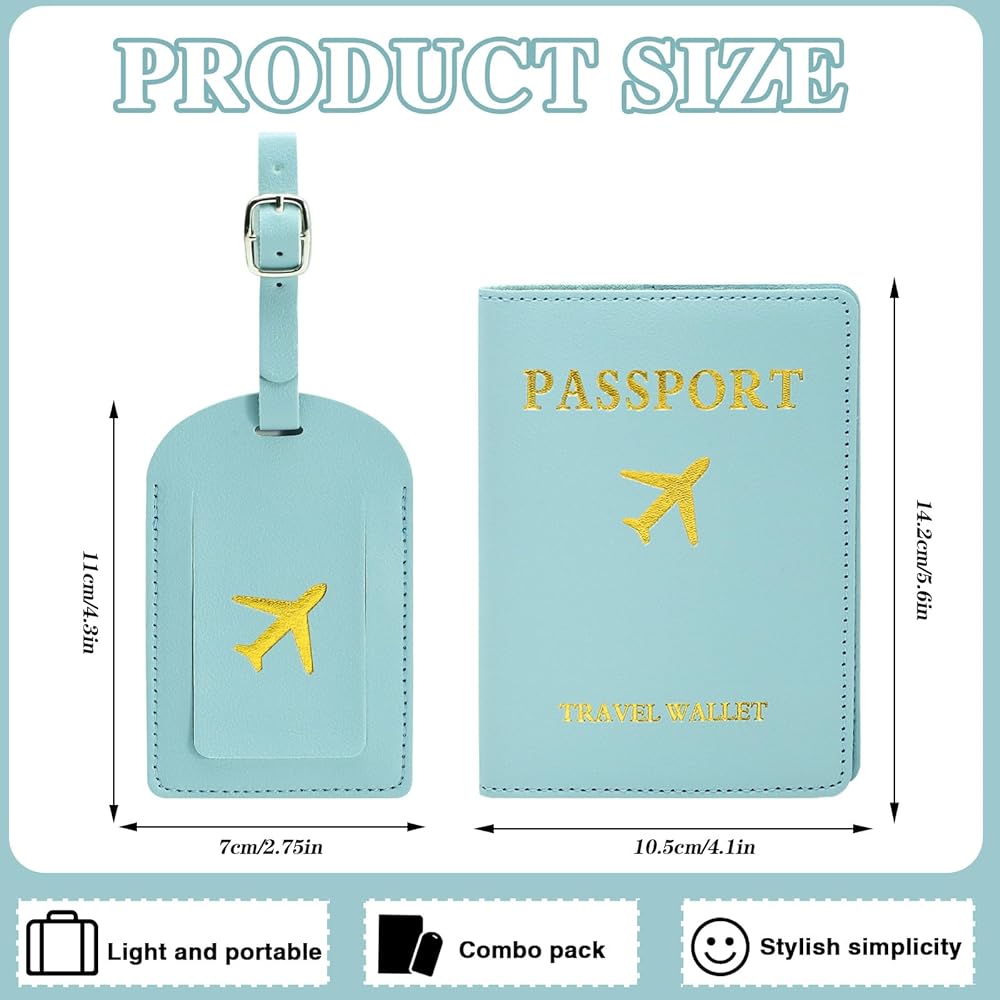 The set includes 2pcs light blue passport covers and luggage tags are made of synthetic leather for easy carrying and protection of travel documents. Makes a great gift for the travel enthusiast.