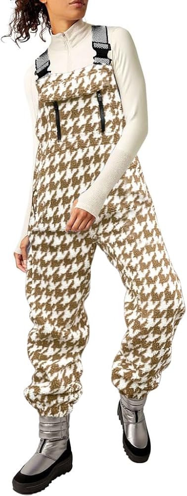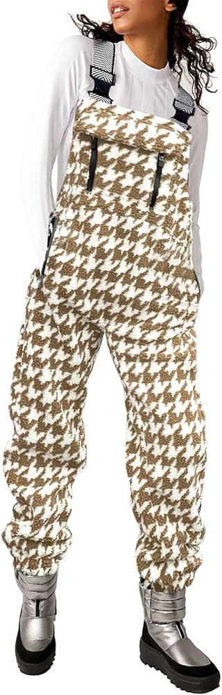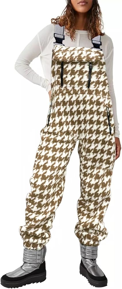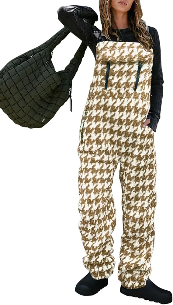 • Feature: Women fleece jumpsuit, classic houndstooth pattern, adjustable suspender straps, front zippered pouch pocket, two Side pockets, casual loose bib overalls with lining, winter outfit. Trendy style, women overalls is perfect for spring, fall and winter.
