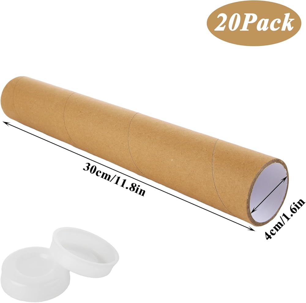 20 قطعة من أنابيب الورق المقوى، أنابيب الملصقات، أنابيب بريدية بنية شديدة التحمل، 300 × 40 مم مع أغطية نهاية بلاستيكية لحماية المطبوعات، المخططات الورقية، الأعمال الفنية