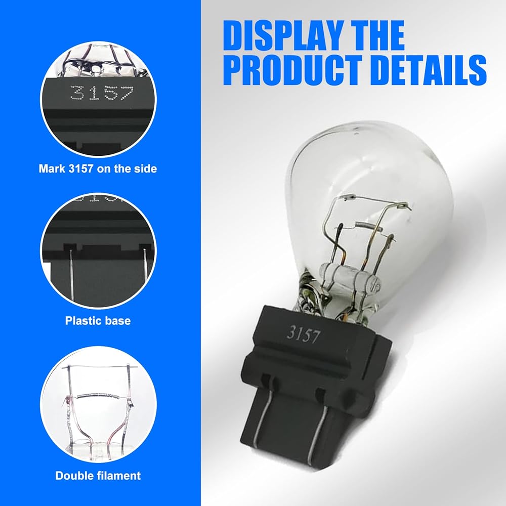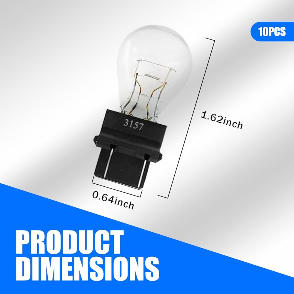 Product Specifications: The model number of this car brake light bulb is 3157, which can provide drivers with a clearer vision. With your purchase, you will receive 10 x car brake bulbs, enough for your bulb repair and replacement needs. This car brake light bulb has a built-in metal wire that extends the life of the bulb.