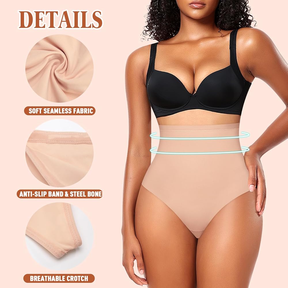 【مريحة ومسامية】سراويل داخلية رفيعة عالية الخصر مصنوعة من مادة البولي أميد والإيلاستين، نسيج فائق التمدد يناسب أي نوع من أشكال الجسم، يمكنك العثور على المقاس المثالي بسهولة. والمواد ناعمة وجيدة التهوية، عندما ترتدين ثونغ التحكم للسيدات، لا يمكنك الشعور به ولكن تظهر شكلًا نحيفًا.