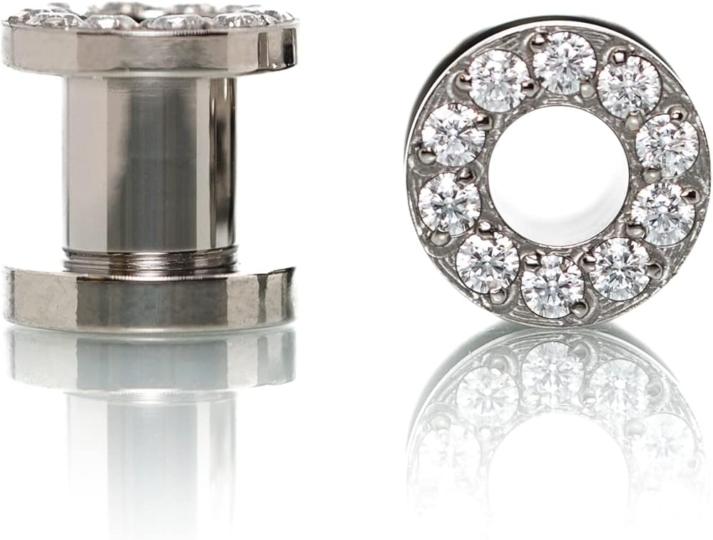 Forbidden Body Jewelry metal ear tunnels look stunning with a row of CZ diamonds on the rim. This stunning sparkle will get you all of the compliments!