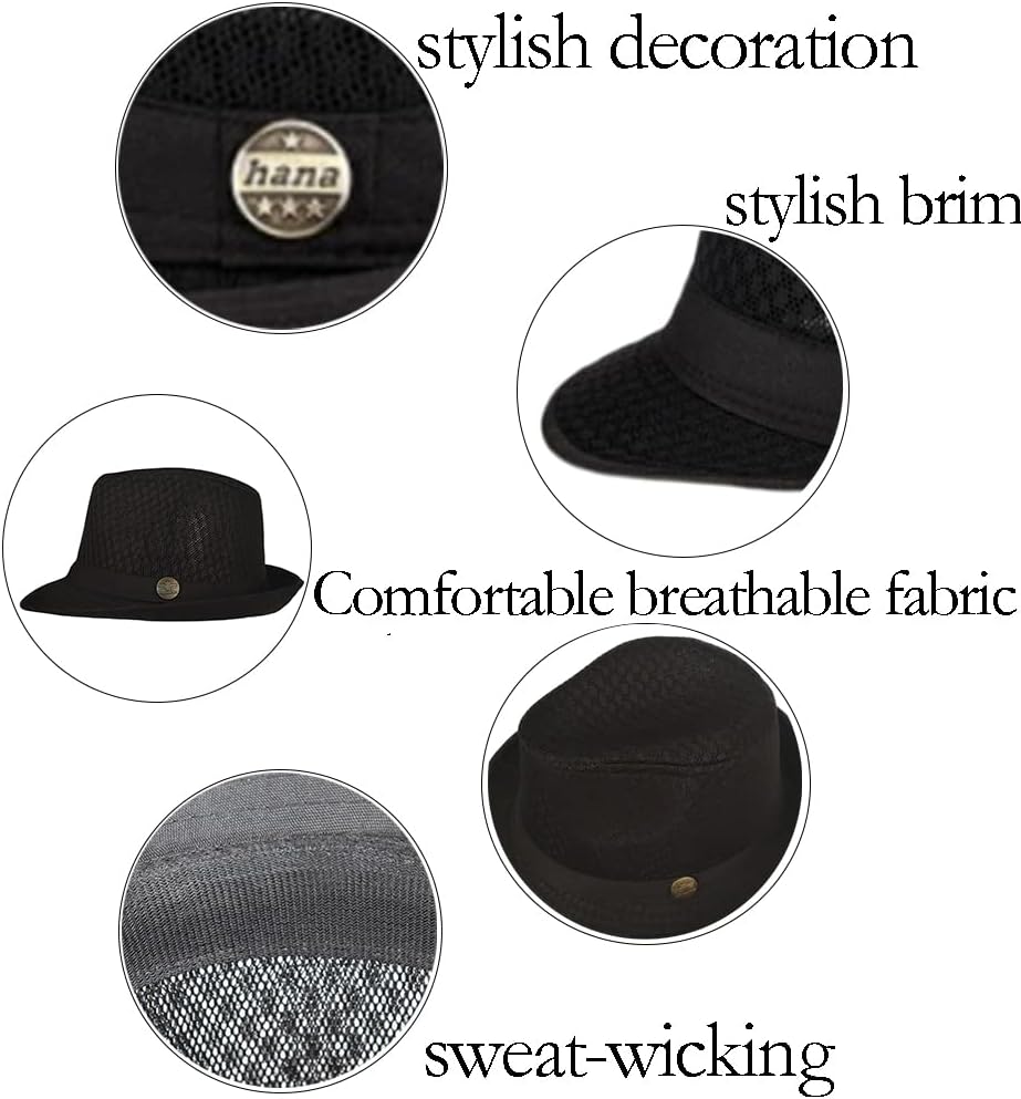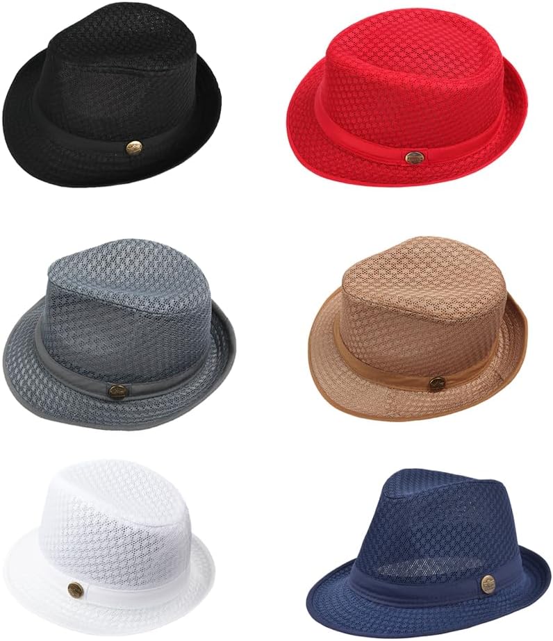 6pcs Summer Mesh Fedora Beach Hat Party Bundle Straw Pork Pie Cap for Men Women 6 pcs Summer Mesh Fedora Beach Hat for Men Gentlemen Trilby sun Gangster Cap