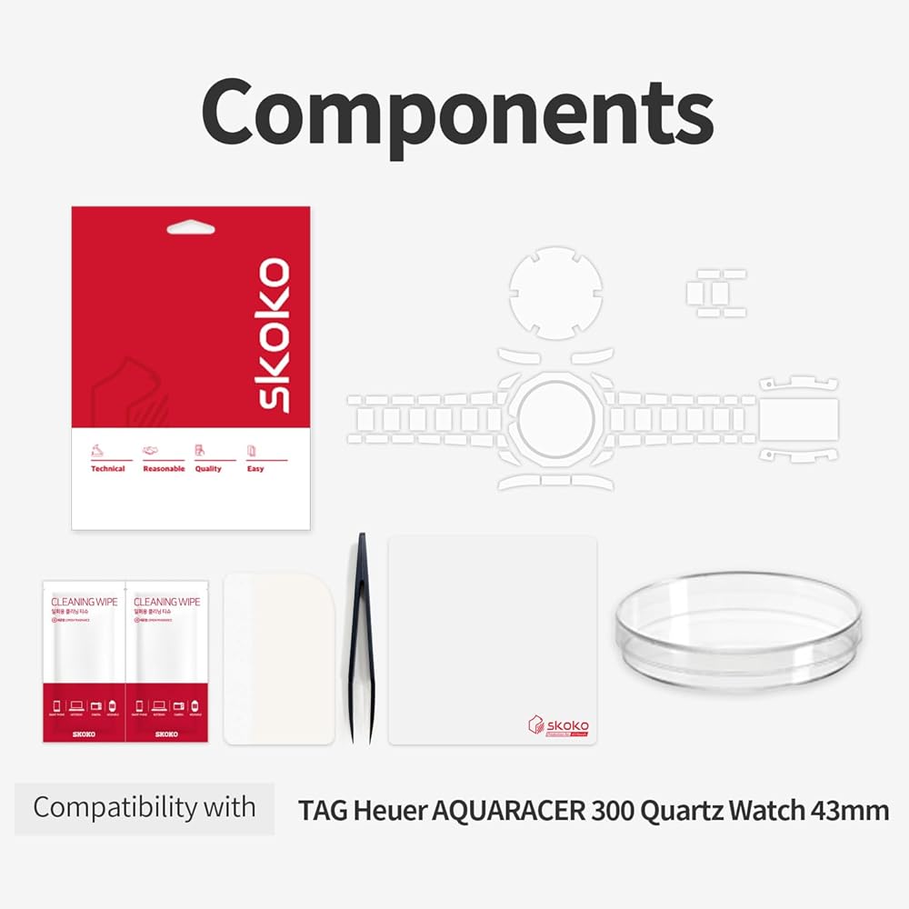 skoko [مجموعة كاملة في حزمة واحدة، طبقة حماية كاملة للجسم متوافقة مع Tagheuer Aquaracer 300m 43mm بشرة شفافة لامعة، تغطية كاملة، مضادة للخدش، سهلة التركيب
