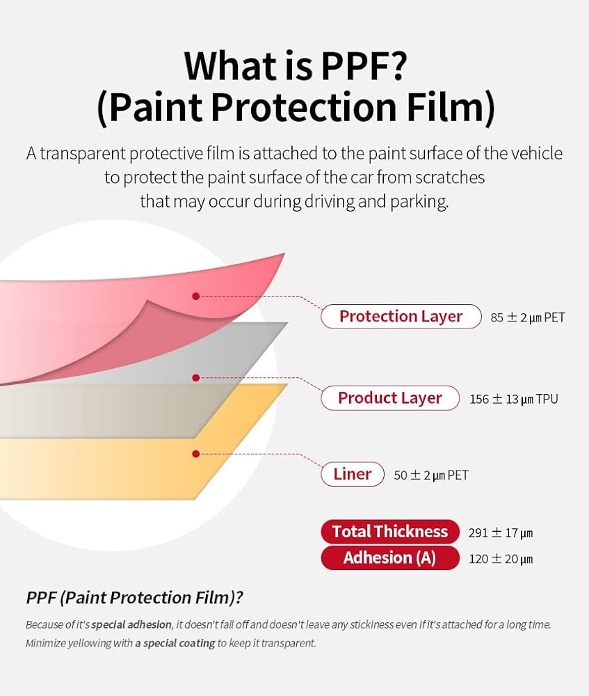 • [Scratch Proof] This is a thin PPF (Paint Protection Film) product. This PPF is a specialized protective film created to safeguard high-end products. It has a thickness of merely 180 microns, which is equivalent to a minuscule 0.007 inches. This product has a strong tensile strength that is capable of preventing scratches typically encountered in automotive applications. It can effectively protect against scratches that commonly occur in daily life.