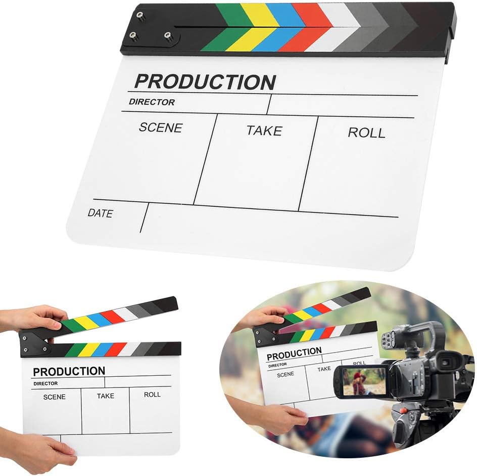 فيلم Oumij1 Clapperboard، أداة تصوير Clapperboard، فيلم فيلم مخرج Clapperboard أكريليك مقاس 30 × 25 سم، تصفيق تصوير مغناطيسي مدمج (سبورة بيضاء مخططة ملونة (PAV1CWE2))