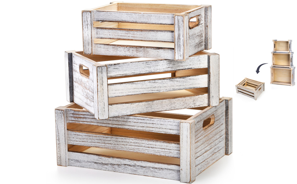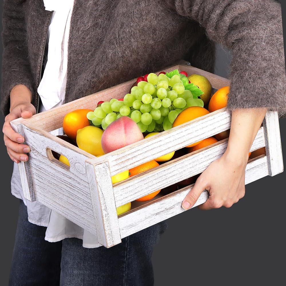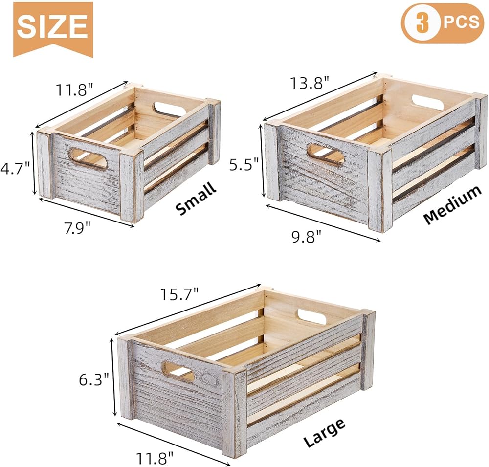 • تصميم عملي: السلة الخشبية لبيت المزرعة قابلة للتكديس ويمكن وضعها في بعضها البعض لسهولة التخزين. المقابض المقطوعة تجعل من السهل حملها. علاوة على ذلك. يمكنك الرؤية من خلال الشرائح ويوجد سطح مفتوح حتى تتمكن من التعرف بسرعة على محتويات الصندوق.