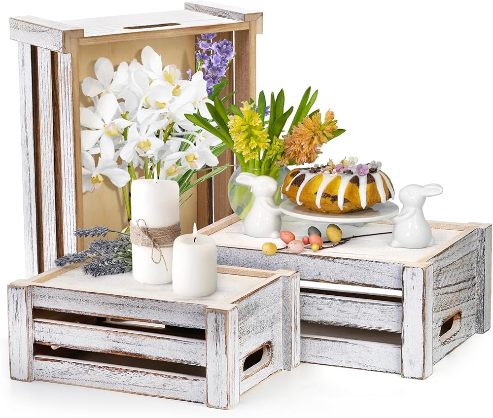 • حاوية متعددة الاستخدامات: صناديق التخزين الخشبية من ZOOFOX تناسب مظهرك الريفي تمامًا. إنها أنيقة لتنظيم مستحضرات التجميل والأشتات ومستلزمات المطبخ والملابس والفواكه والخضروات والألبومات والمزيد. مثالية أيضًا كعروض زفاف للحلويات وطاولات البطاقات واللافتات.