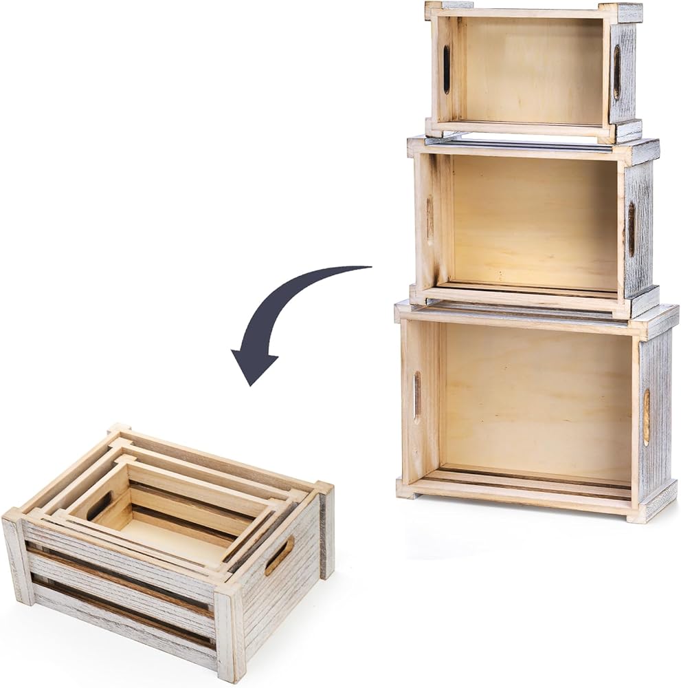 مجموعة ZOOFOX مكونة من 3 صناديق تخزين خشبية، حاوية تخزين التعشيش بمقابض، سلة خشبية مزخرفة للمنزل، ديكور حمام ريفي