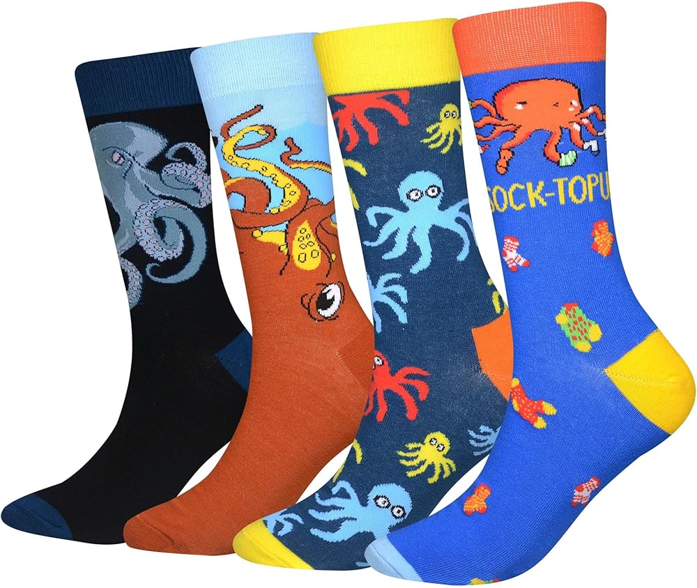Cansok Men's 4 Packs Animal Socks Gift Fun Crazy Novelty Dress Crew Socks (White Polar Bear - 4 pairs)