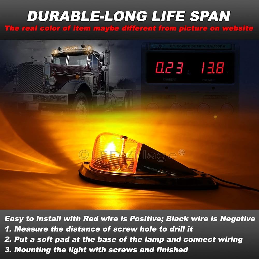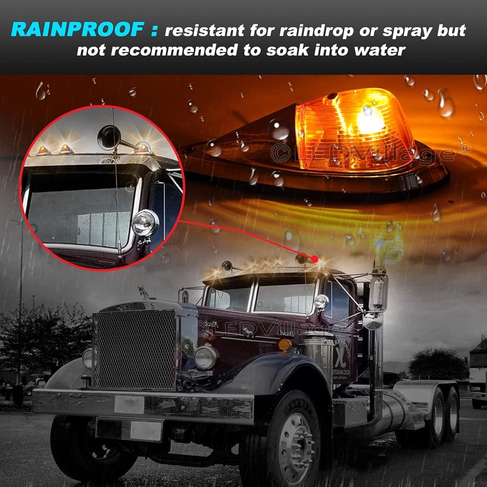 متوافق: عالمي للشاحنات، والمقطورات، والجرارات، وشبه المقطورة، والشاحنات القلابة، والمركبات الخاصة، وما إلى ذلك. للشاحنات الثقيلة مثل Peterbilt، وخطوط الشحن، والدولية، وKenworth، وMack، وما إلى ذلك تعمل كعلامة على سقف الكابينة، وإضاءة تشغيل السقف، وإضاءة التخليص .