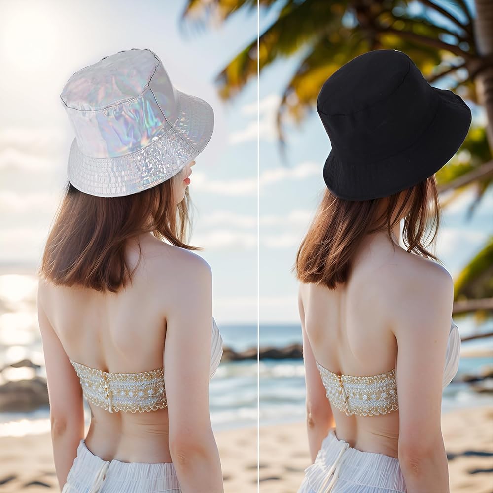 Unique design: The bucket hat uses holographic metal design, sparkling, to add highlights to your wear, more eye-catching, but also reversible, a fisherman's hat can be used as two, super value, you deserve to have.