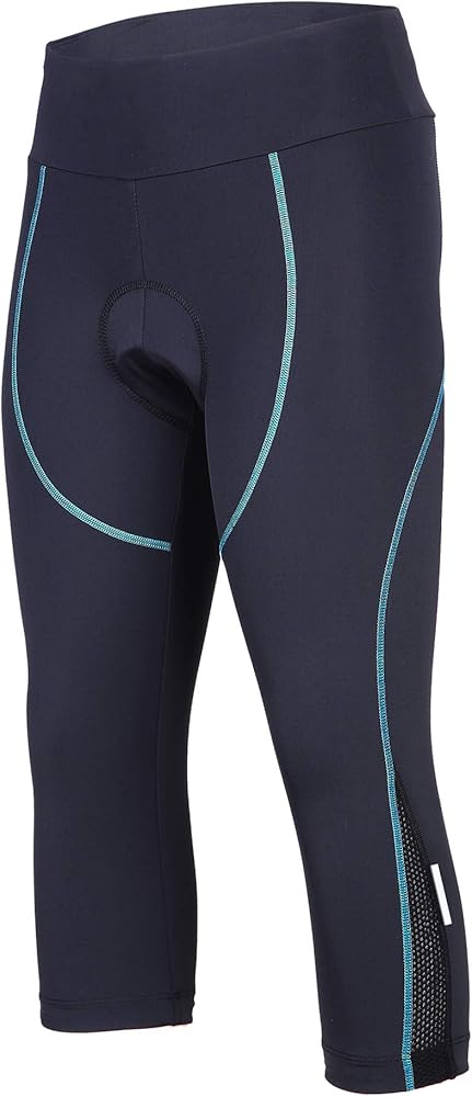 سروال نسائي لركوب الدراجات 3D مبطن للدراجة ضاغط 3/4 سروال كابري للدراجة مع جيب بسحاب (M، أزرق)