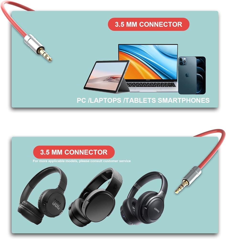 💎 كابل Aux مقاس 3.5 ملم متوافق مع الهواتف (Android وiPhone)، ستريو السيارة، iPod، سماعة رأس PS4، Xbox one، المسرح المنزلي، الكمبيوتر الشخصي، التلفزيون، سماعات Sony & Beats، أجهزة Kindle Fire اللوحية، Samsung Galaxy، Google Nexus، أجهزة Microsoft Surface اللوحية، Nokia هواتف Lumia الذكية ومشغلات Sansa MP3 (تناسب منافذ aux القياسية مقاس 3.5 مم).
