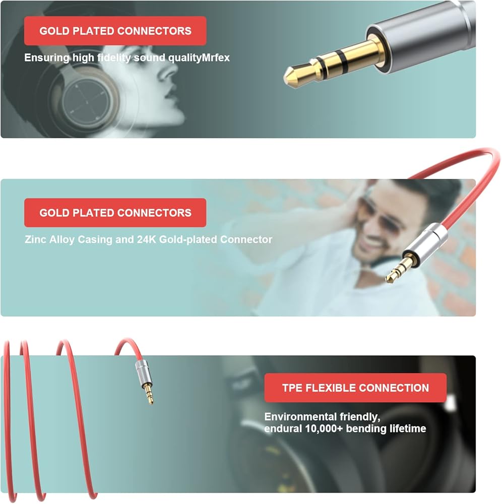 💎تضمن الموصلات المطلية بالذهب عيار 24 قيراط والهيكل المصنوع من سبائك الألومنيوم حصولك على صوت موثوق وواضح. فهو ينقل صوت ستيريو بسلاسة للحصول على صوت عالي الجودة.