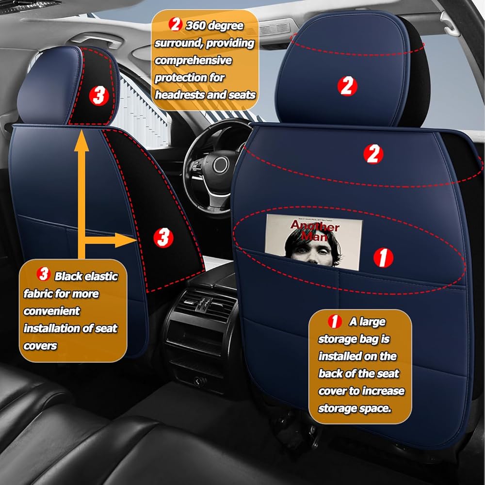 • ❤[الحفاظ على وظائف السيارة الأصلية]: تم تصميم غطاء المقعد حول السيارة للحفاظ على جميع وظائف وأدوات التحكم في المقعد، مثل الوسائد الهوائية وأحزمة الأمان ومساند الذراعين وتعديلات المقعد. يسمح غطاء مسند الرأس المستقل بتعديل مسند الرأس بسهولة للحصول على الراحة والأمان الأمثل. يوجد جيبان في مسند ظهر المقاعد الأمامية لتخزين الأغراض الصغيرة.