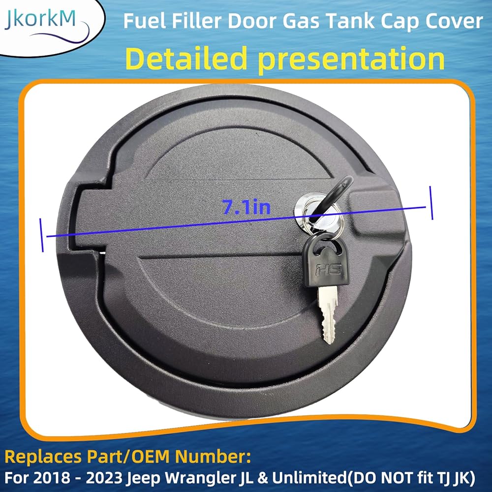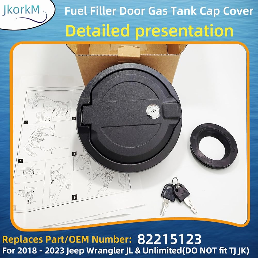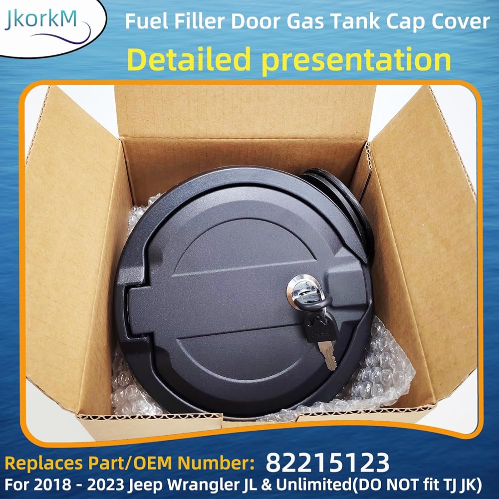 سهولة التركيب والتوافق: OEM#82215123 غطاء غطاء خزان الغاز لباب حشو الوقود مناسب لـ 2018 2019 2020 2021 2022 2023 Jeep Wrangler JL & Unlimited (لا يناسب TJ JK)، Jeep Wrangler JL & JLU، 2 باب و4 أبواب. غطاء غطاء الغاز هذا سهل التركيب دون الحاجة إلى الحفر.