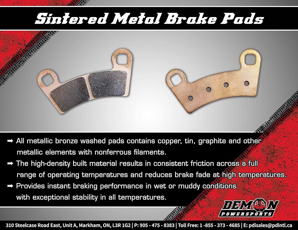 وسادات فرامل ملبدة أمامية يسار/يمين من Demon Powersports لسيارة Honda TRX 500/680/700، مادة معدنية ملبدة لقبضة أفضل وعمر أطول (انظر تفاصيل الإعداد في الوصف)