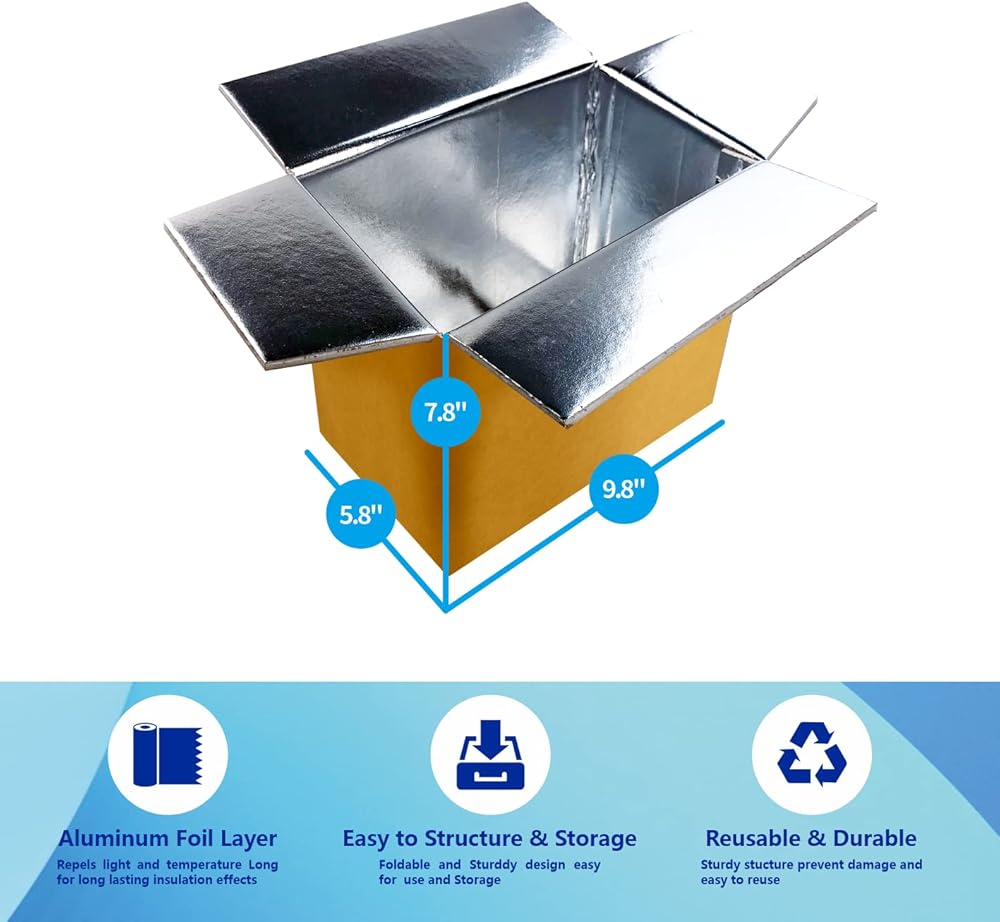 • 【متين وقابل لإعادة الاستخدام】- صندوق الشحن المعزول مصنوع من ورق كرافت سميك، والطبقة الوسطى مصنوعة من مادة إسفنجية عالية الكثافة. يمكن لفيلم الألمنيوم الداخلي أن يتحمل الضغط الكبير، مما يضمن أن الكرتون متين ولديه توسيد جيد. التصميم القابل لإعادة الاستخدام ليس فعالاً من حيث التكلفة فحسب، ولكنه أيضًا صديق للبيئة، مما يُظهر وعيك البيئي