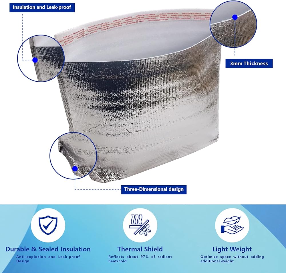 • 【طبقة رقائق الألومنيوم وبطانة حرارية】- الطبقة الداخلية عبارة عن رقائق الألومنيوم، التي تطرد الضوء ودرجة الحرارة لفترة طويلة للحصول على تأثيرات عزل تدوم طويلاً. مع البطانة الحرارية المتطابقة ودمج عبوات الثلج الجاف الخاصة بالشحن، والتي تم تعظيمها للمساعدة في إطالة عمر صلاحية العناصر الخاصة بك وجعل التسليم أكثر أمانًا وسهولة.