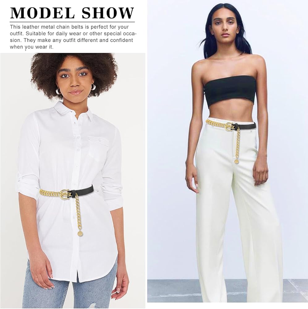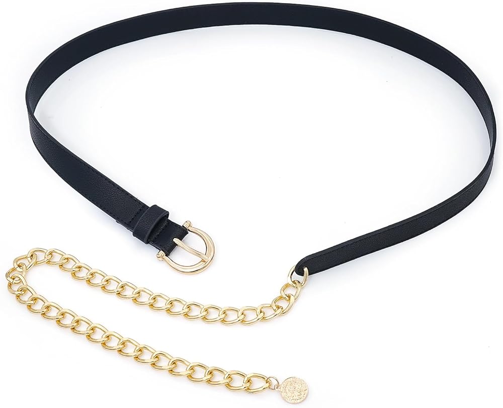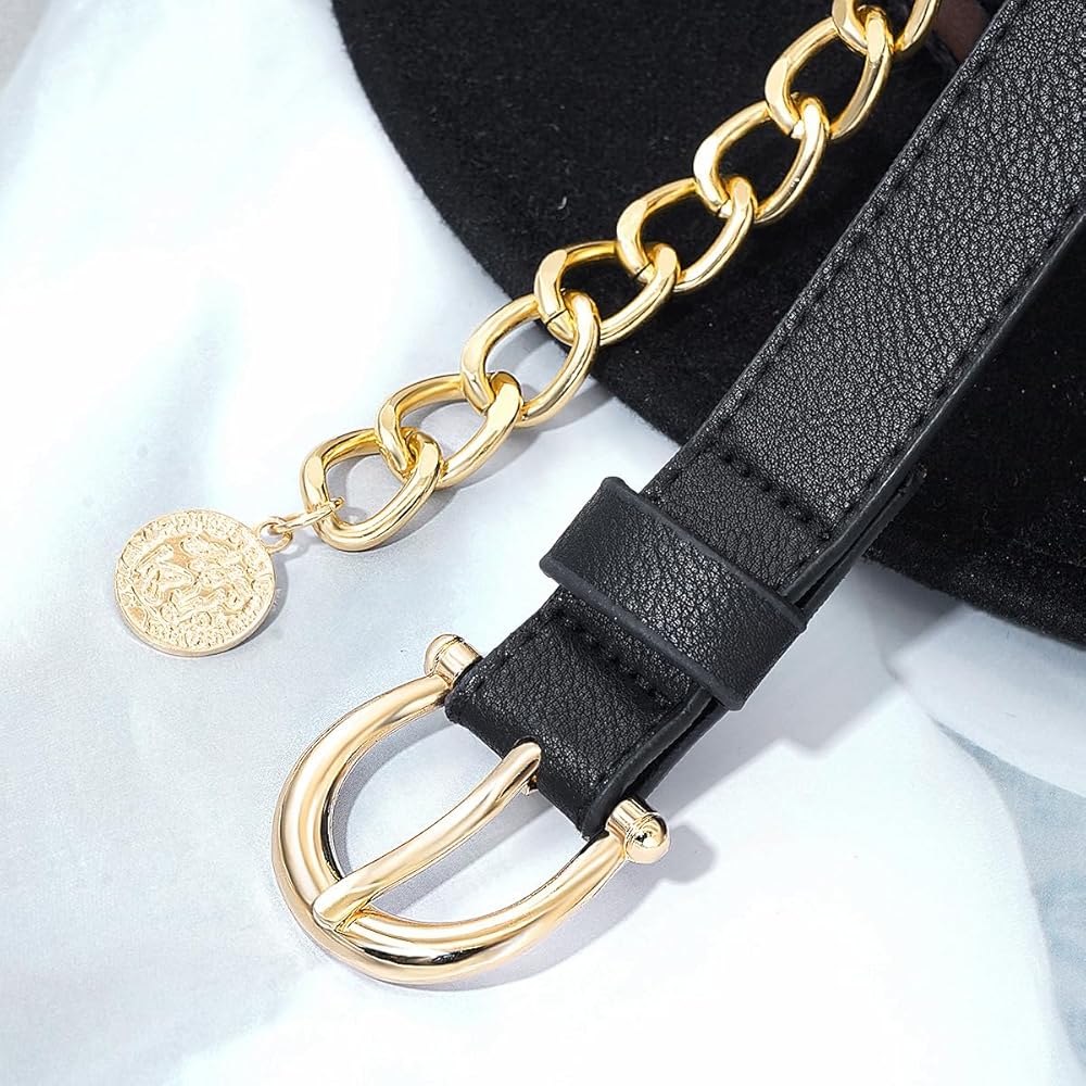 Design: Special design makes this belt outstanding from other pu leather belts, and the alloy hollow chain keeps delicate and trendy with dresses,skirt,jeans,suit.