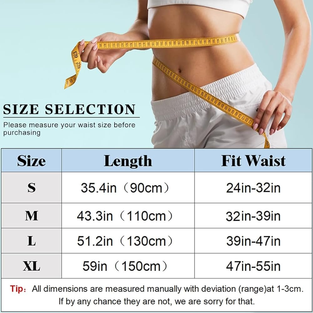 Size: Four lengths to choose from. Suitable for most people. Length: 90/35.4in, it is suitable for women with a waist circumference of up to 60-80cm/24-32in. Length: 110/43.3in, it is suitable for women with a waist circumference of up to 80-100cm/32-39in. Length: 130/51.2in, it is suitable for women with a waist circumference of up to 100-120cm/39-47in. Length: 150cm/59in, it is suitable for women with a waist circumference of up to 120-140cm/47-55in.