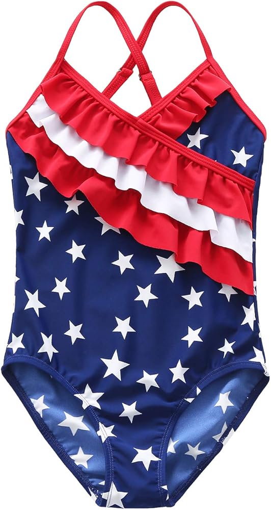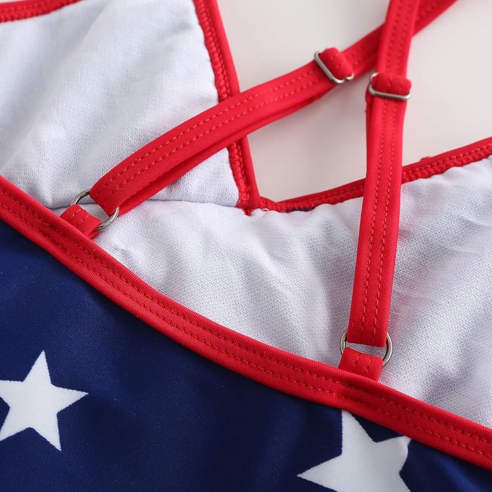 • FEATURES: Classical slim Cut One Piece Swimwear with X adjustable straps at back, pretty secure and comfortable. Elegant founce details at chest, making girls more modest and chic.