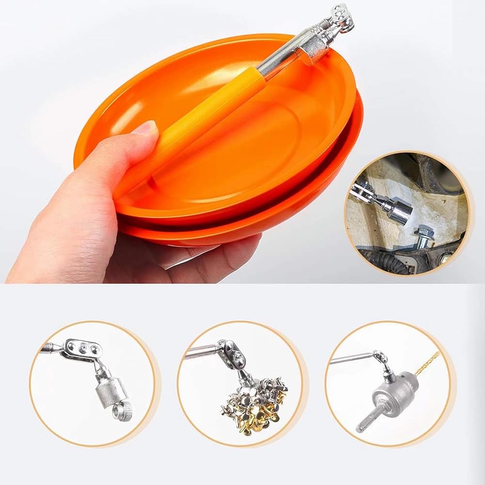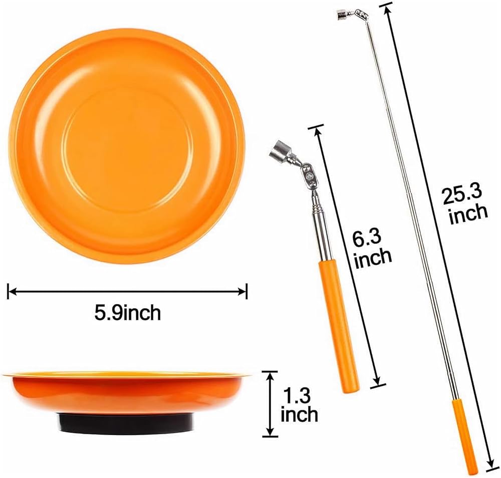 Includes 2 magnet tray (6") and 1 telescopic magnetic pick-up tool, which can easily find and grasp small parts in every corner and gap.