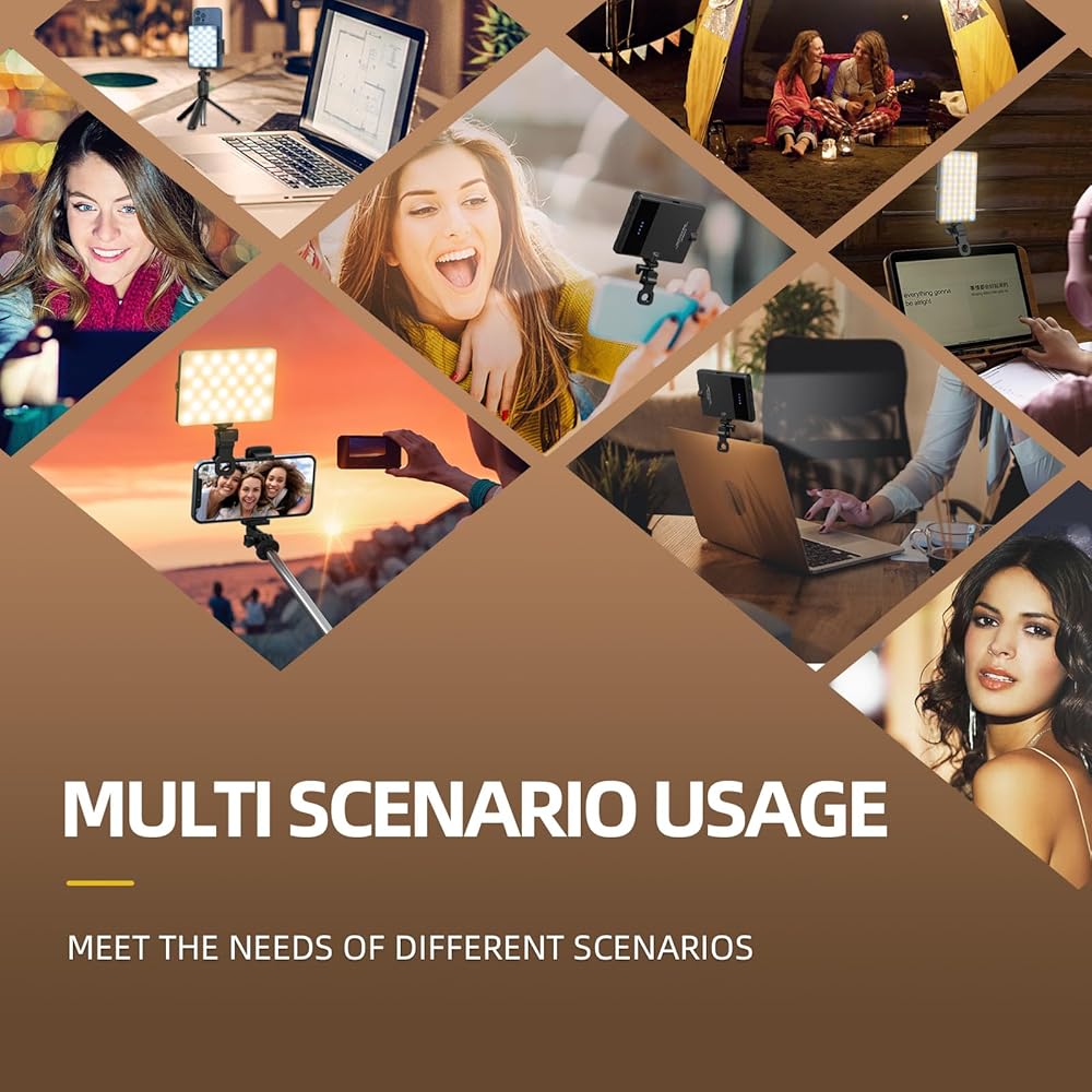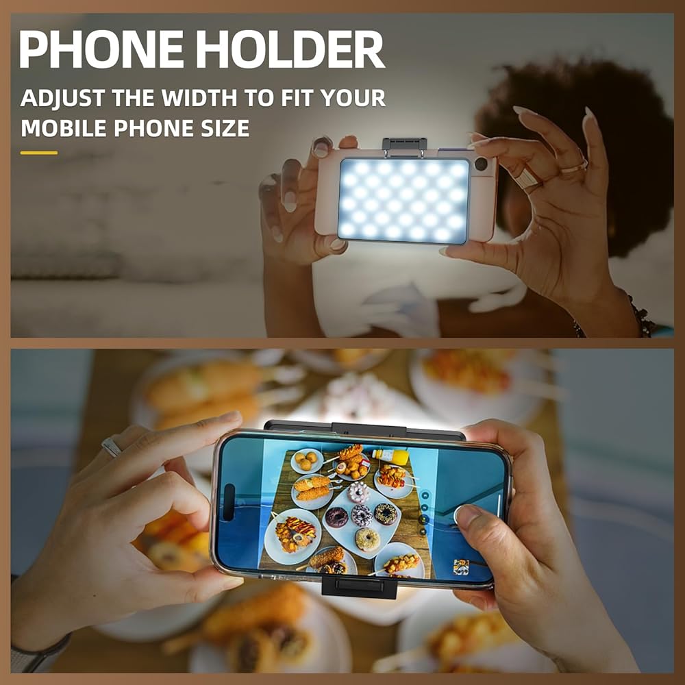 رفيع للغاية وقابل للحمل: تم تصميم مصباح السيلفي المحمول هذا ليكون رفيعًا للغاية وصغير الحجم وسهل الحمل والاستخدام. يضمن التصميم الأنيق والعصري أنه لن يضيف عبئًا على هاتفك أو حقيبتك. يعد تشغيل ضوء الهاتف هذا أمرًا سهلاً للمستخدمين من جميع مستويات المهارة.