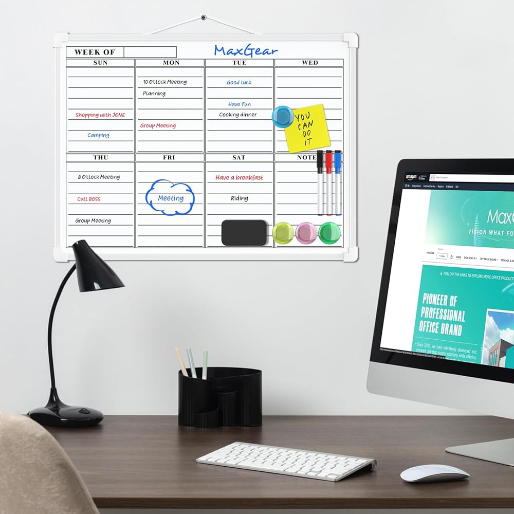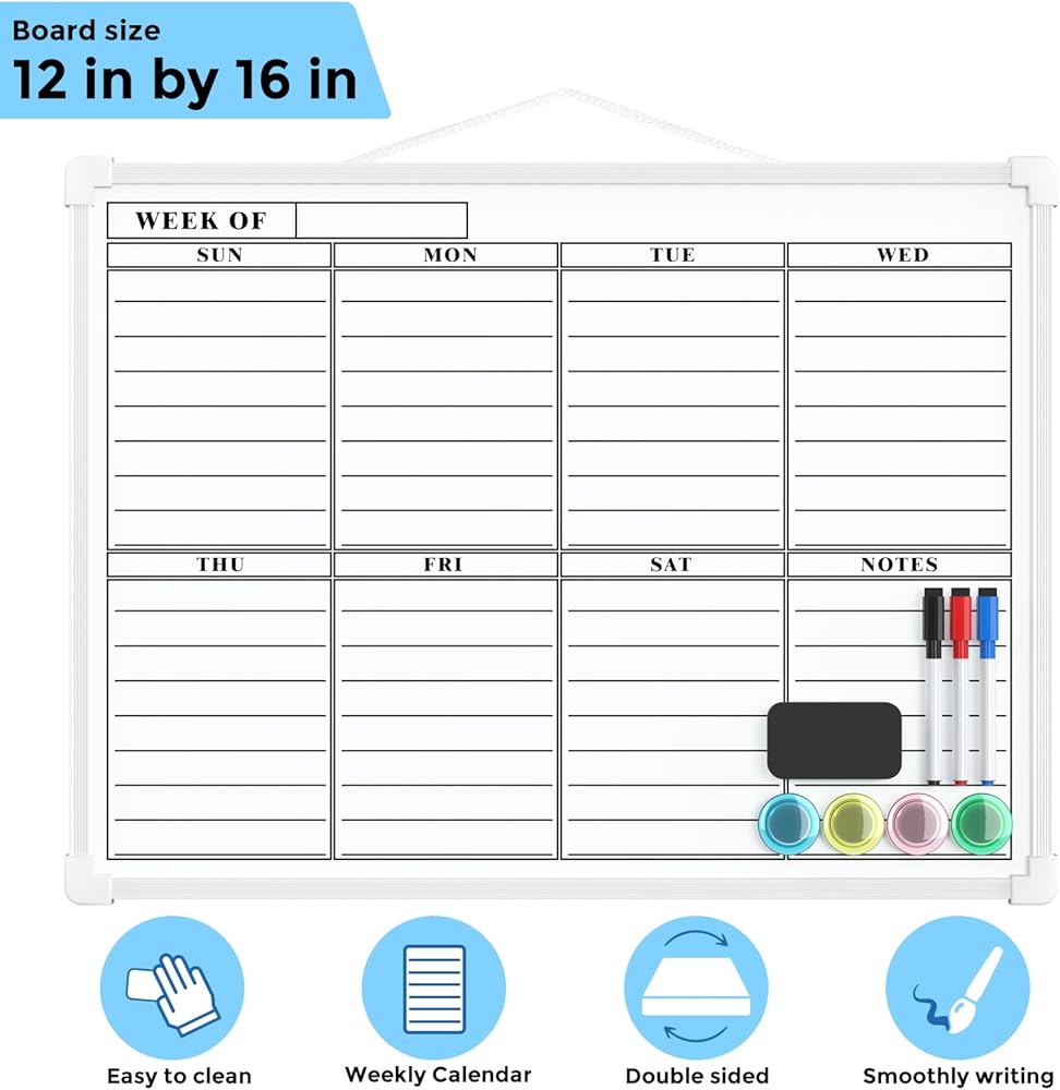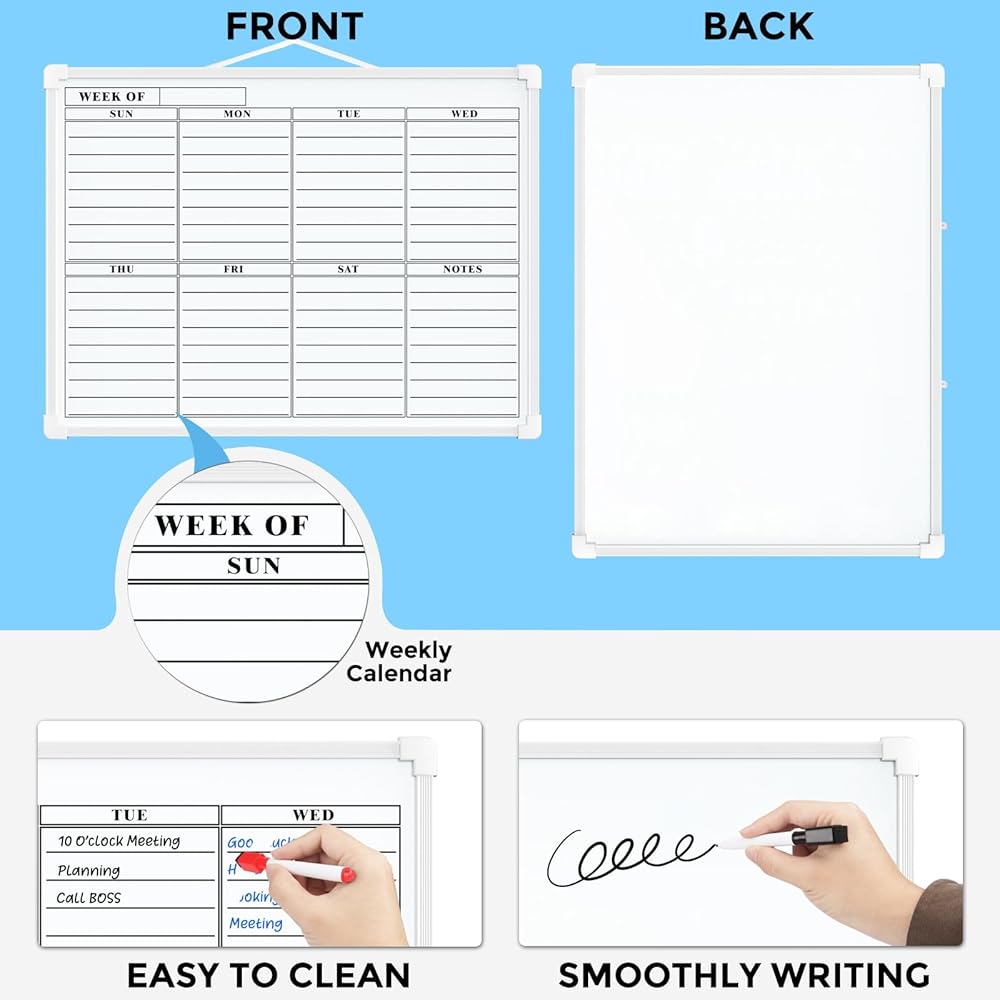 مزدوجة الجوانب: تختلف عن اللوحات البيضاء الصغيرة الأخرى، توفر السبورة البيضاء المغناطيسية الصغيرة ذات الوجهين MaxGear وجهين مزدوجين وخفيفة الوزن وقابلة للحمل. التقويم الفارغ والمسح الجاف الأسبوعي، مما يمنحك مساحة كبيرة للكتابة. تتيح لك مساحة الكتابة الأكبر تنفيذ المزيد من المشاريع في نفس الوقت، وتساعدك على متابعة الأحداث أو التواريخ أو الخطط أو التذكيرات أو المواعيد أو المهام أو قائمة المهام. انها مريحة للاستخدام. أفضل هدية!