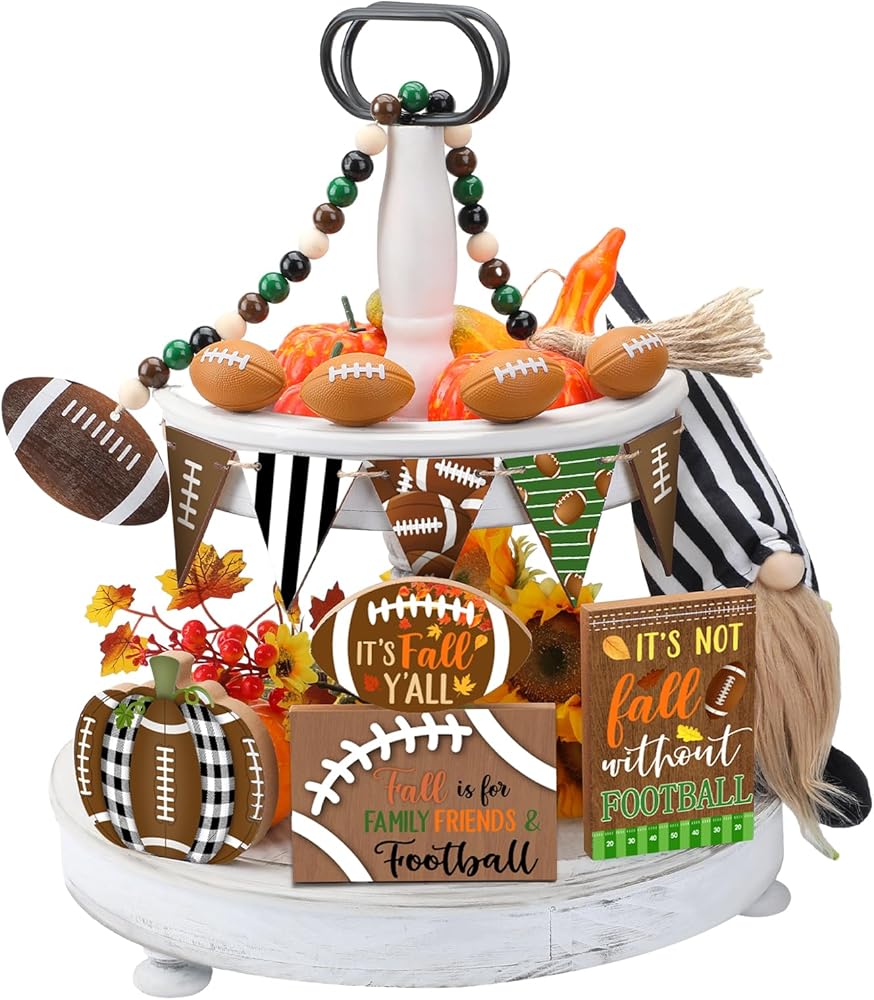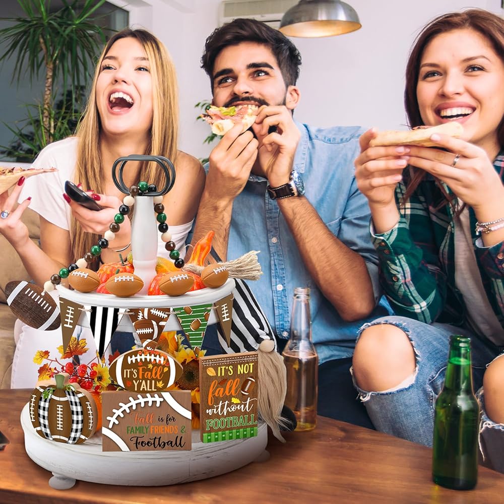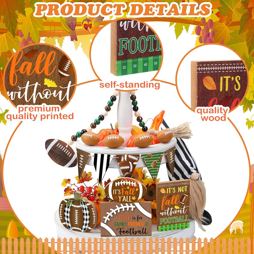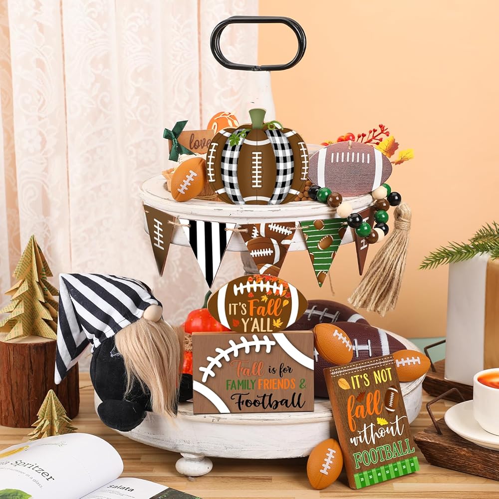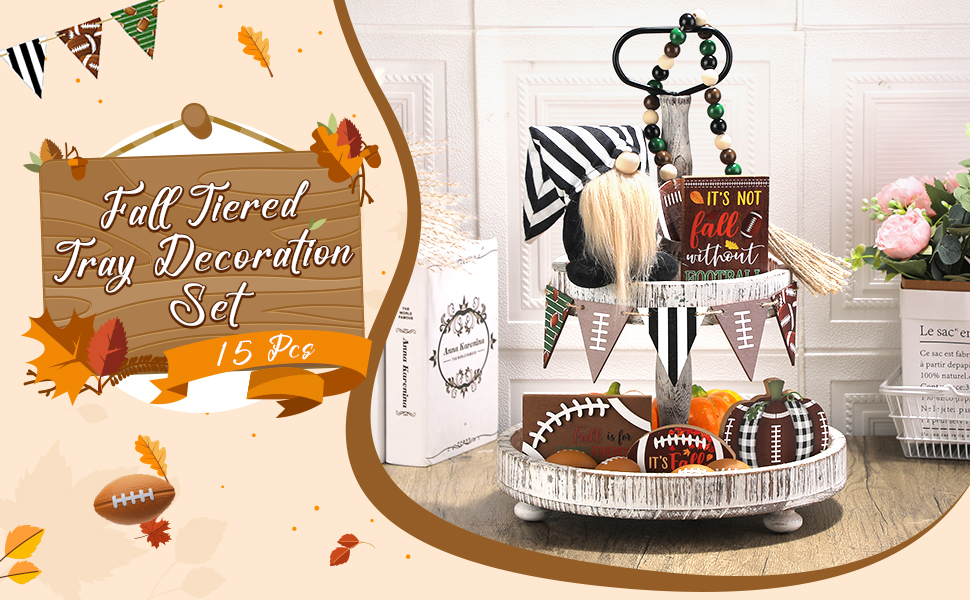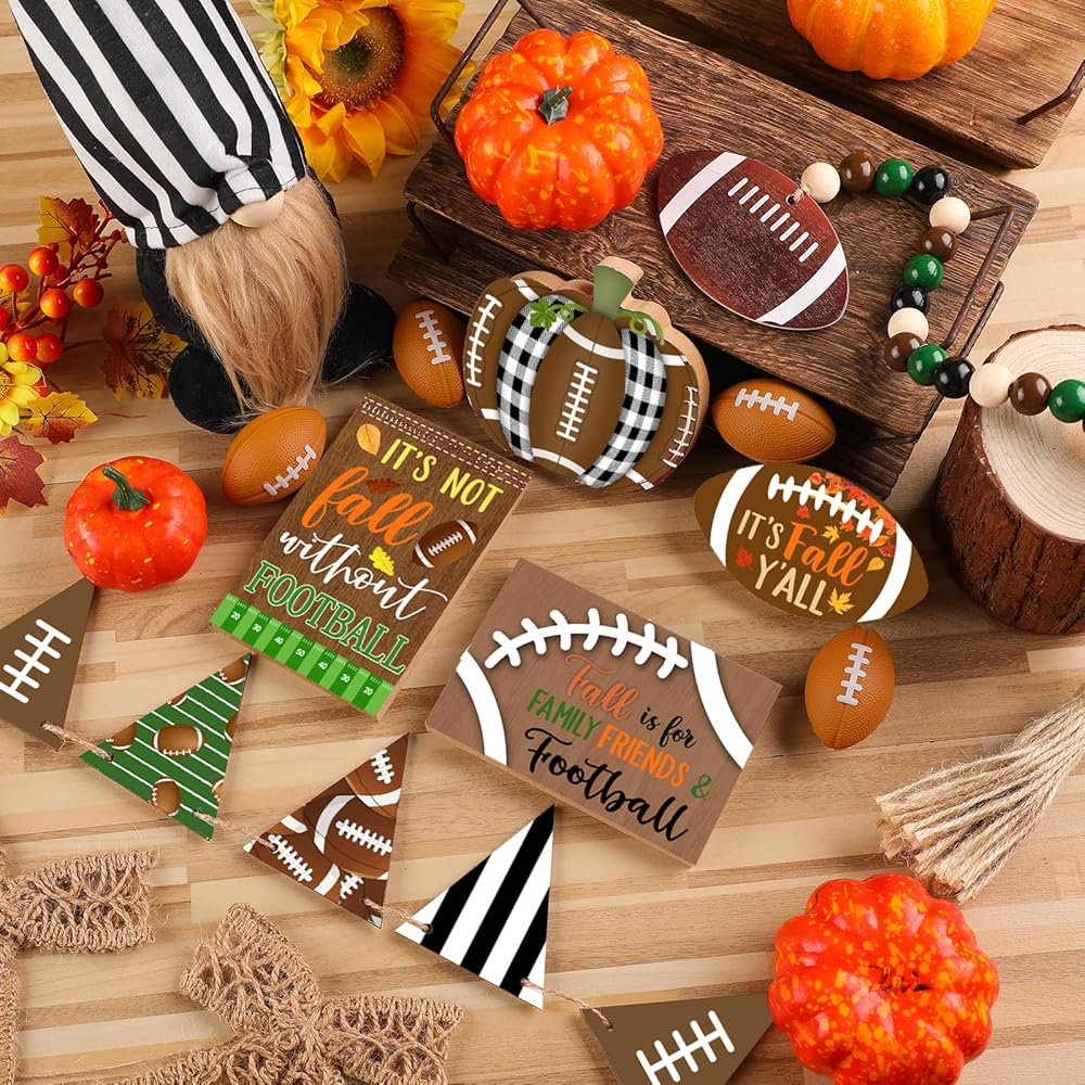 15 قطعة من صينية تزيين كرة القدم المتدرجة لتزيين كرة القدم في الخريف، علامات خشبية ريفية لديكور المنزل، إكليل كرة القدم جنوم الخرزة لعيد الشكر، رف طاولة المنزل، عطلة المطبخ