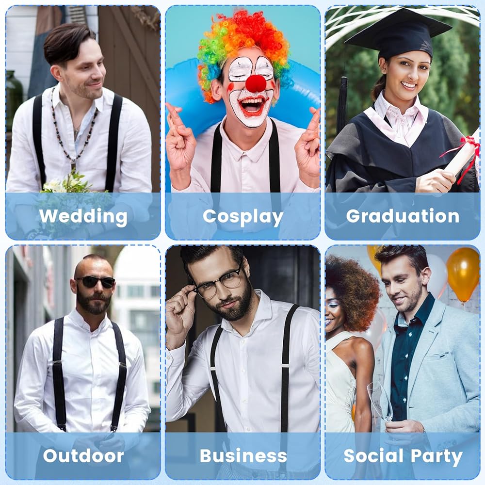 【Multifunctional】:Our men's black suspenders not only provide reliable pants support when hidden in shirts in daily life, but can also be worn over shirts and used as regular suspenders that can be worn with a variety of fashionable outfits.