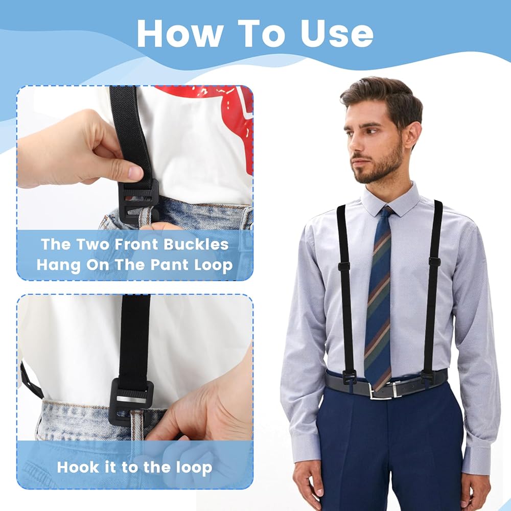 【Easy to Apply】:Our hidden suspenders for men are simple to use, simply attach them to your pants and adjust to the desired elasticity. They can be used with a variety of pants, including jeans, casual pants and formal pants. Whether you are at a wedding, office, school or traveling.