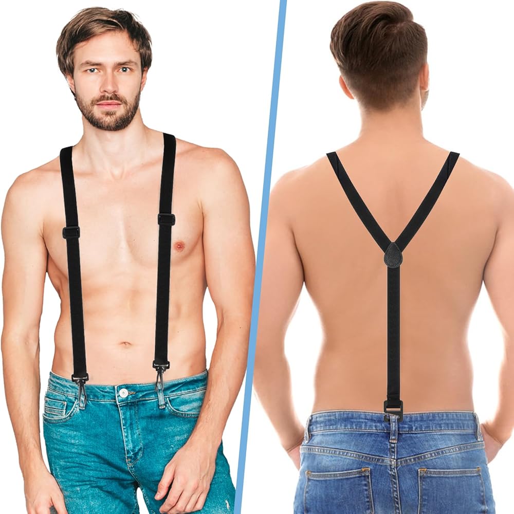 【More Comfortable】:Our men's suspenders for dress pants are mainly made of high quality polyester and elastic material with good elasticity, featuring a three-point design that evenly distributes around the waist, eliminating the feeling of restriction and discomfort caused by belt buckles, and enjoying enhanced comfort all day long without compromising on style.