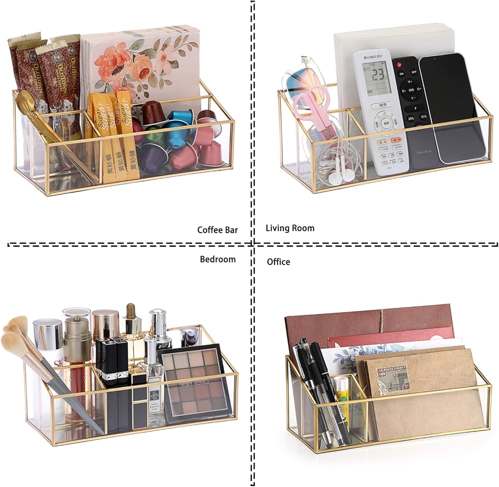 مادة متينة: فارز البريد الخاص بنا مصنوع من زجاج سميك عالي الجودة مع مادة إطار معدني ذهبي، قوي ومتين، مع الاحتفاظ باللون الذهبي الجميل. المظهر موجز وفريد من نوعه، إنه منظم بريد لطيف وقوي مع مساحات مختلفة لتخزين العناصر المتنوعة.
