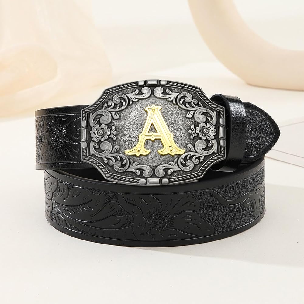 【إبزيم حزام بالحروف الأولية للرجال والنساء】تصميم مع حرف P الذهبي في منتصف إبزيم الحزام، وإبزيم حزام مخصص للرجال والنساء لارتدائه.