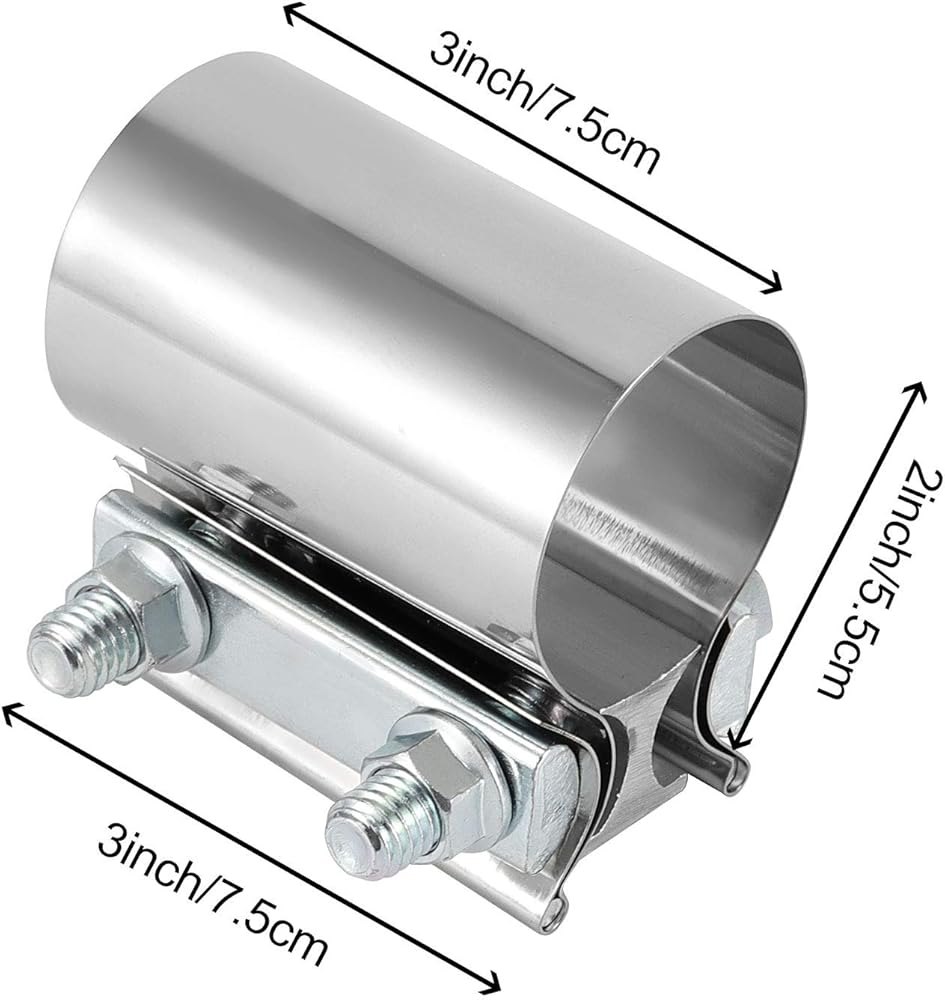 • PREMIUM MATERIAL - The 3 inch exhaust clamp is made from high quality 304 stainless steel, stainless steel material, not easy to rust, corrosion-resistant. Precision-machined, shiny surface with no burr. Inside diameter: 3 inches.