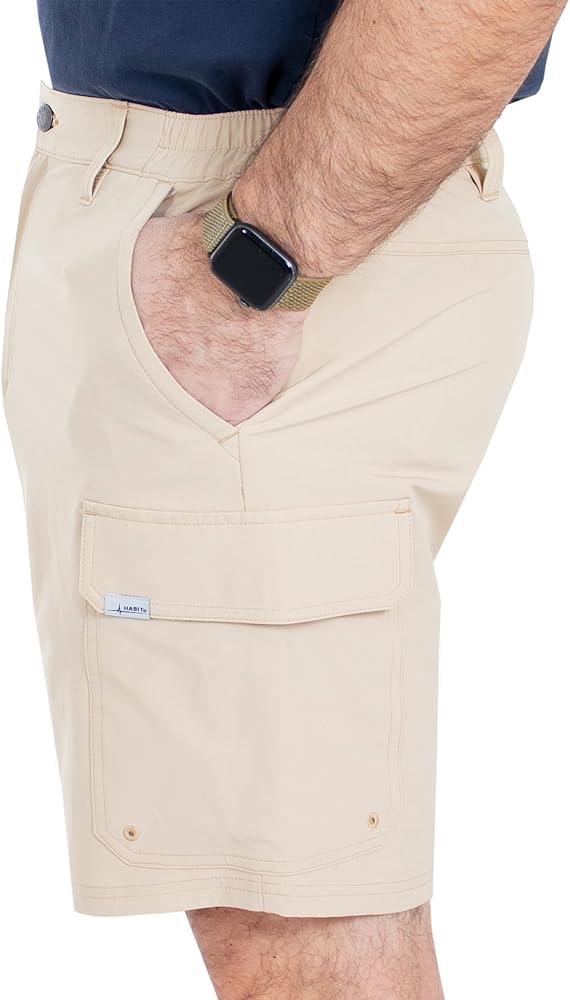 Durable and quick-drying Polyester Spandex Pongee fabric with a five-pocket design and reinforced knife pocket provides convenience and functionality. The side elastic waistband ensures a comfortable fit, while the Solar-Factor 40+ UPF protects your skin.
