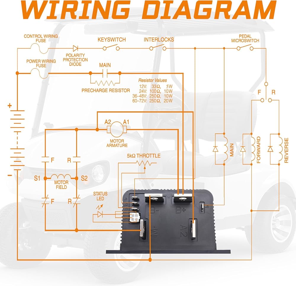 نماذج الملاءمة: وحدة التحكم DC تناسب سيارات Golf Carts Club Cars وColumbia وE-Z-GO وNordskop وMelex وغيرها