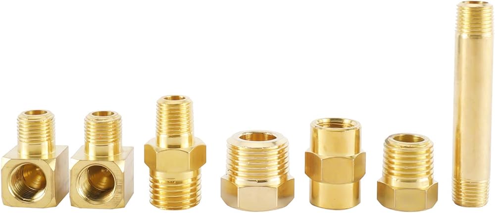 تشمل العبوة: 6x تركيبات نحاسية، 4x محولات، 1x أنبوب تمديد نحاسي، 1x مقياس ضغط مع خرطوم مرن بطول 42 بوصة، 1x تعليمات، و1x حقيبة حمل