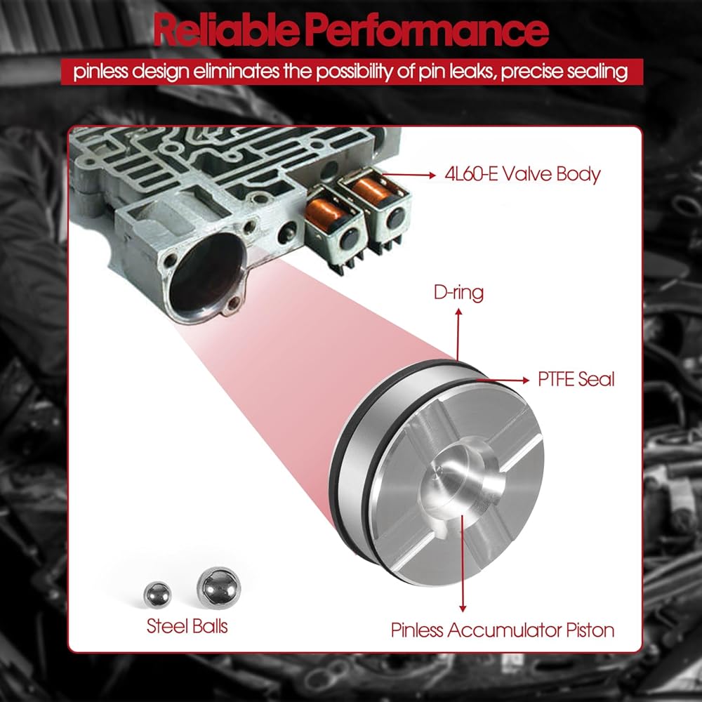 STABLE PERFOEMANCE - the old plastic piston pin holes were very prone to wear due to repeated reciprocating motion, and lost fluid would cause the forward clutch to slip, resulting in jerky starts and difficulty shifting first and second gears. It is recommended that you replace it in time. This aluminum sealed pinless accumulator piston kit meets or exceeds oem standards and is factory tested to be an exact match to the original vehicle and ready to install